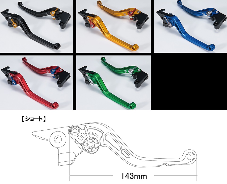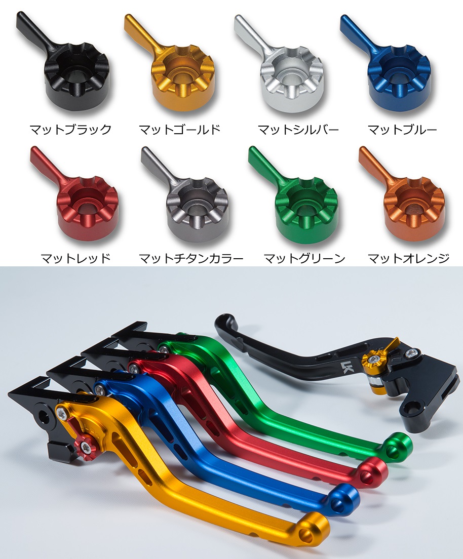 レバー本体カラー:ブラック(ツヤなし:ツヤ無色の落ち着いたカラーリングです。)サイズ:レバー部全長 約143mm素材:6061アルミ材※アジャスターカラーを8色よりお選びください。U-KANAYAの製品は元GPライダーの金谷秀夫氏と内商会のコラボレーションによる商品です。内商会の管理の下で精密加工しております。U-KANAYAの全商品は、日本国内にて専門のスタッフが製品の組み立て及び検品を行っておりますので、安心してご使用いただけます。スタンダードタイプレバーの特徴レバー本体の肉抜きにより軽快なデザインアジャスト機構のツマミデザインの変更による操作性の改善レバーエンド形状の最適化によりバーエンドへの接触を極力おさえる構造商品説明高強度・耐食性に優れた6061アルミ合金を使用。粗悪なアルミ材を使用した安価なビレットレバーとの違いは一目瞭然です。精密なフルマシニング加工により高級感のある仕上がりとなっています。純正のレバーと入れ替えるだけで簡単に装着可能です。車種によっては純正の部品を流用します。純正レバーと比べてレバー位置が手前にくるため力を掛けやすい形状になります。手の小さい方や純正レバーを遠くに感じていた方に特にお勧めです。カチッとしたクリック感の良いワンタッチアジャスターによりレバー位置を近くから遠くまで6段階で調整可能。レバー先端部分で約30mmの調整幅があります。レバーの長さは約143mmです。 ※アタッチメント部は含まず。内商会独自の管理システムを導入していますので、万が一のアクシデントによる破損部品の部品供給にも迅速に対応可能です。補修部品も細かく設定されているので、破損部品の供給もスムーズです。商品は予告なしに価格や仕様を変更する場合がありますのでご了承ください。純正のクラッチレバーホルダーカバーが付いている車輌の場合、一部加工または取り外しが必要な場合があります。モニターの環境により、画像の色が実物と若干異なって見える場合がございます。画像はイメージです。取付アタッチメントの形状が実物とは異なる場合があります。