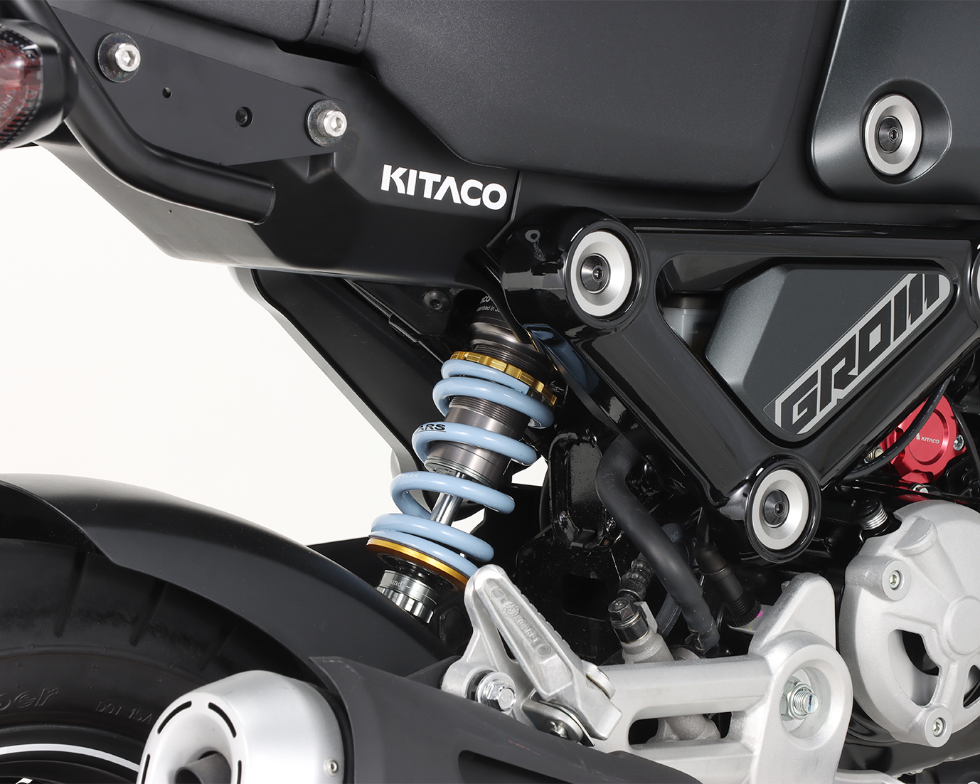 ミニバイクパーツメーカーのKITACOとサスペンションパーツで実績名高いGEARSとの共同開発。ストリートやサーキットで走行テストを重ね、主にロングツーリングでの高積載時や、エンジンチューニング車両等の高負荷時に快適なフィーリングを保てるように、最適なバネレートとダンパー特性を設定。車高調整、伸び側減衰力調整、プリロード調整機構を備え、状況に応じて幅広くセッティングが可能です。自由長:240mm(JC92 ノーマル同等)※ノーマル参考:244mm(JC61/JC75)プリロード調整機能:無段階伸側減衰調整:14段階車高調整・+7mmガス、オイルダンパー式フリーピストン方式1本販売フックレンチ付属※車高調節用ロックナットは振動等で緩む場合がありますので、定期的に締め付け確認を行ってください。