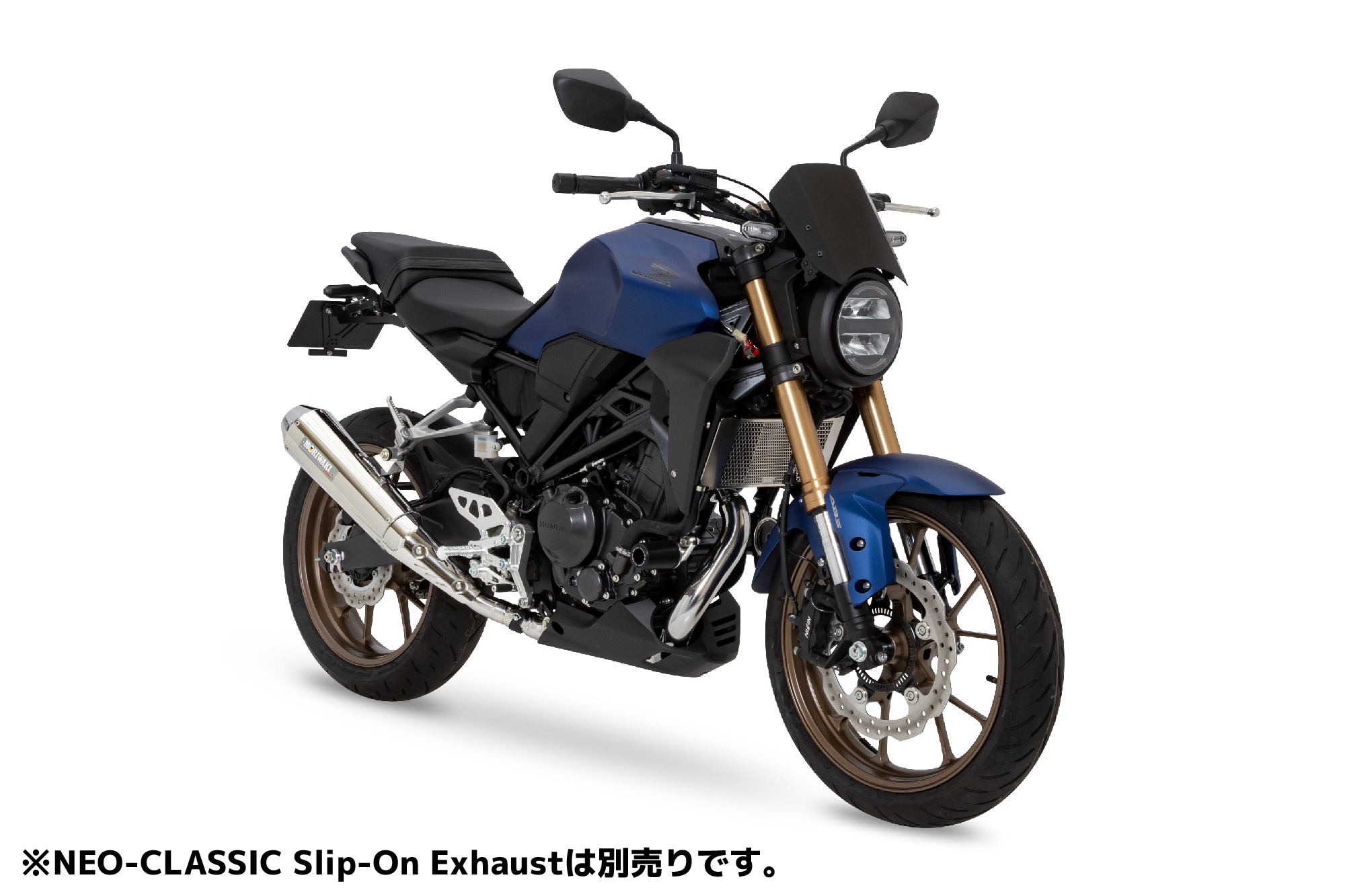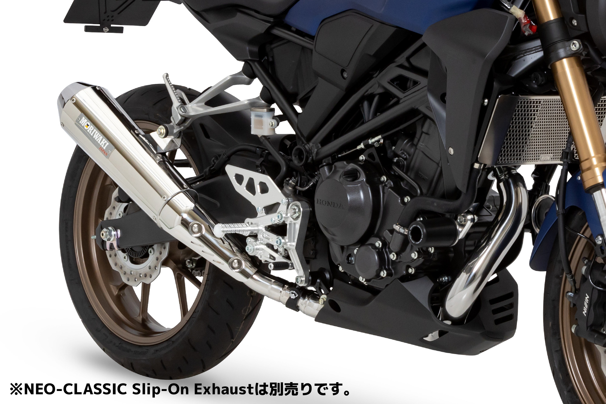 「極太の二重管構造が魅せる迫力のスタイリングと性能」CB250R NEO CLASSIC SLIP ONと組合せることでフルエキゾースト化できます。極太のパイプは2重構造になっており、内部の空間をレゾネーター領域として使用することで低回転域とピークパワーの出力を強化。エンブレを軽減する効果がありより快適速をスムーズに行えます。モリワキ製「NEO CLASSIC SlipOn Exhaust」との組み合わせのみ認証試験を受けております、その他の排気系との組み合わせは不可となりますのでご了承ください。SUS(ステンレスポリッシュ)バフ研磨で磨き上げた極太のフロントパイプがフロント回りに迫力を持たせます。材質:ステンレスカラー:ステンレスポリッシュ車検:車検対応/政府認証排気音量:近接 90dB/加速 78dB
