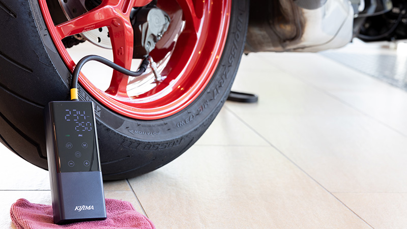 オートバイ・自動車・自転車用タイヤをはじめ、幅広い用途に使える充電式の電動エアポンプがさらに使いやすい内容へと進化いたしました。
