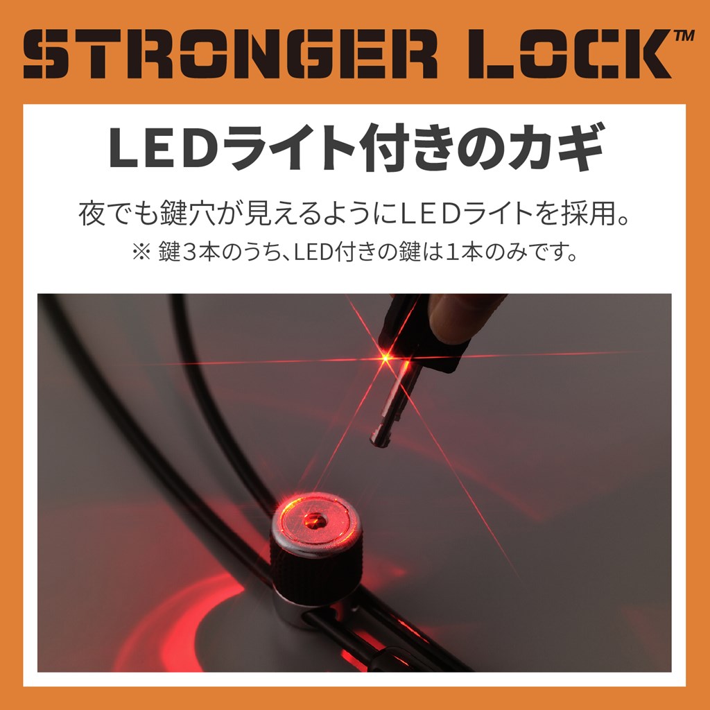 持ち運びに便利なコンパクトサイズのケーブルロック。ツーリング先でのジャケットやバッグ・ヘルメットの盗難を抑止。1800mmのロングケーブルが場所や方法を選ばずに使用できます。ピッキングに強い7ディスクシリンダー採用。カギには夜間の操作に便利なLEDライト付き。1800mmのロングケーブルでジャケットやバッグなどの盗難抑止ツーリング先で使いやすいコンパクトサイズのケーブルロックピッキングに強い7ディスクシリンダー採用夜間の操作に便利なLEDライト付きのカギ1800mm×φ4.5(先端金具部:φ6.5)※カギは完全に差し込んだ状態で、解錠方向に回してください。完全に差し込んでいない状態で無理に回すと、破損する場合があります。※カギの複製はできません。