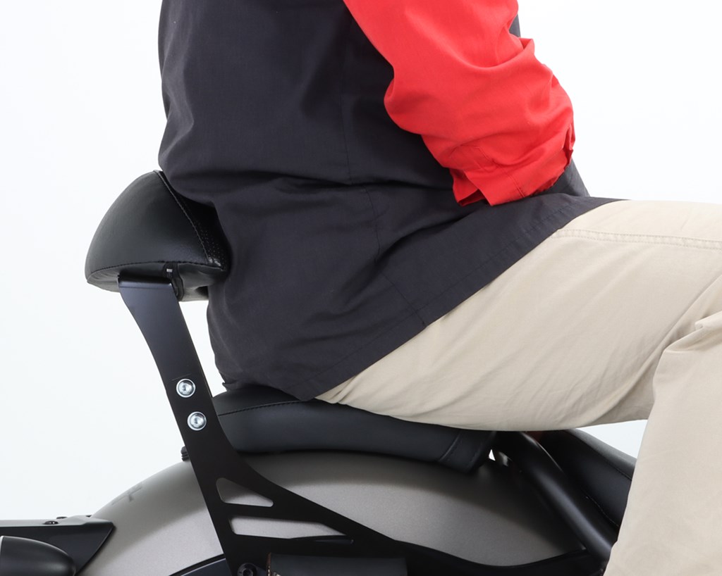 二人乗車時でも安心して走行できるバックレストです。ステー:スチール製ブラック塗装仕上げパッド位置前後微調整可能バックレストパッド寸法:幅310×高さ90×奥行100(mm)ボルトオン設計