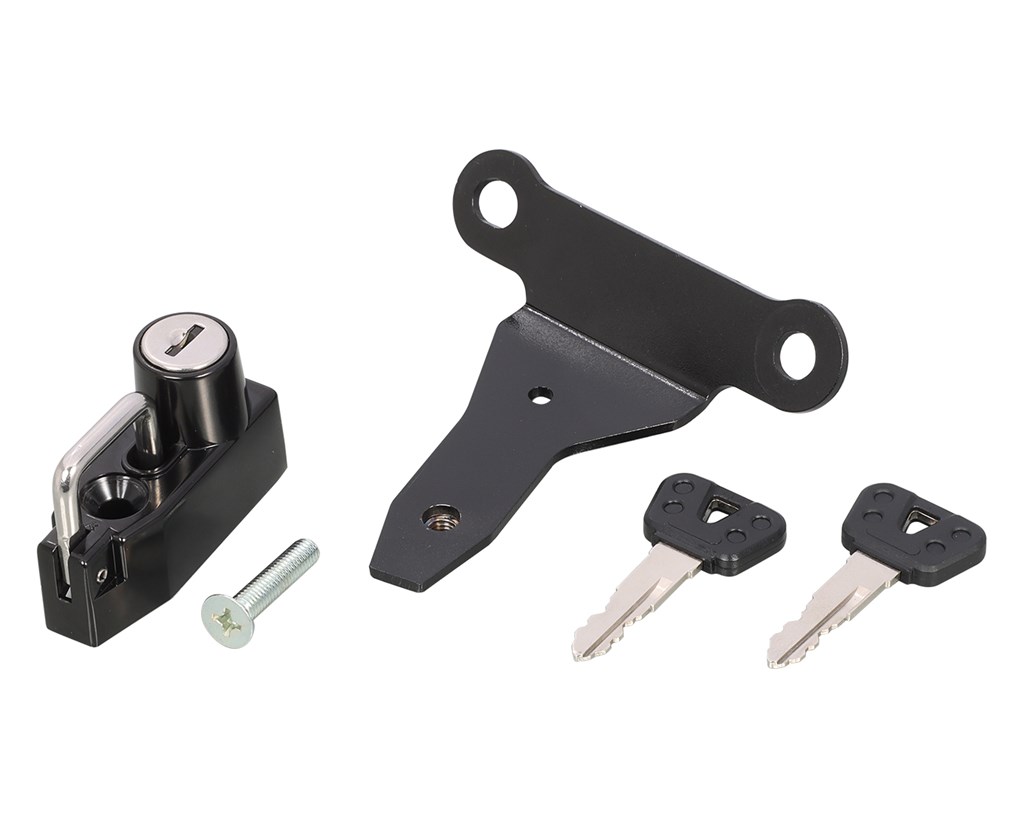 日常の使い勝手を向上させるヘルメットロックです。キー:2ヶ付属ステー:スチール製ブラック装着箇所:タンデムステップ部共締め※ヘルメットを掛けたまま走行しないでください。