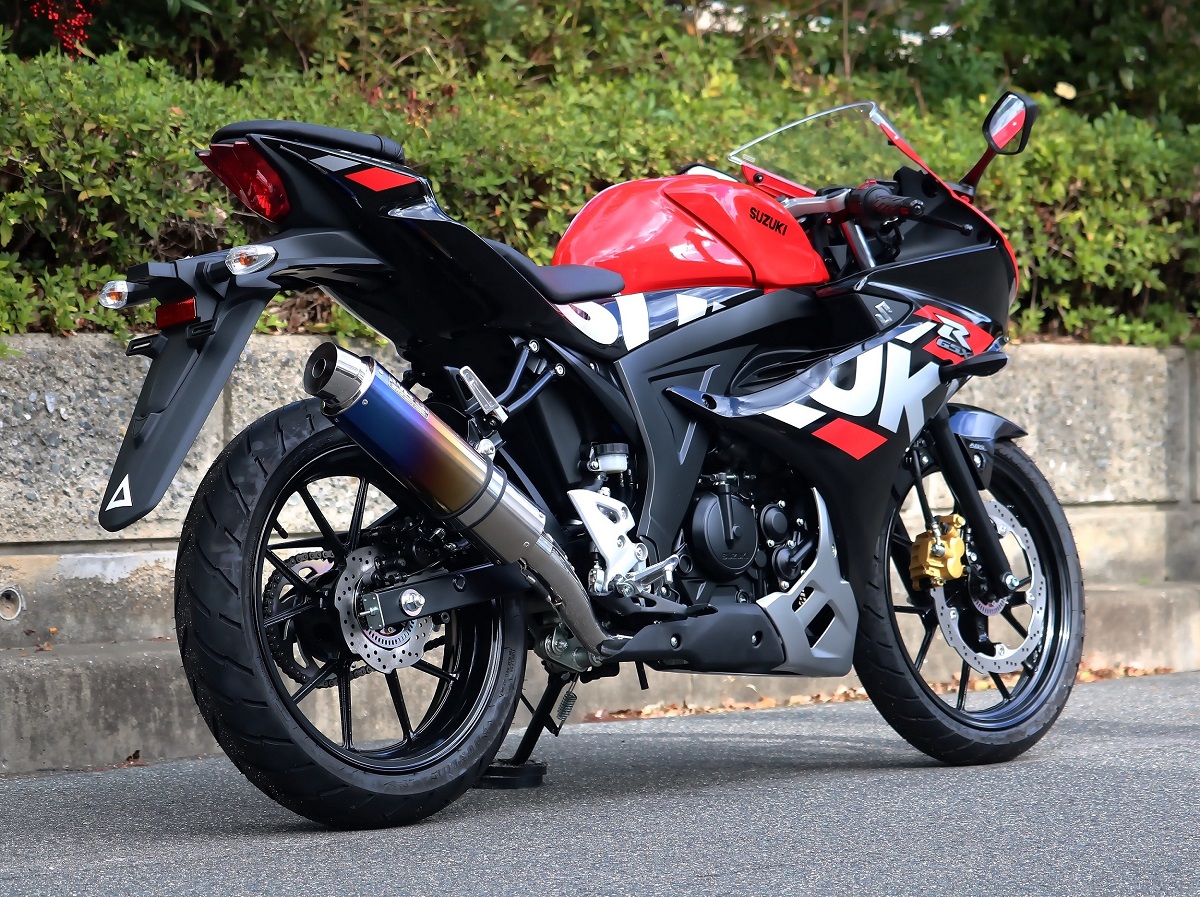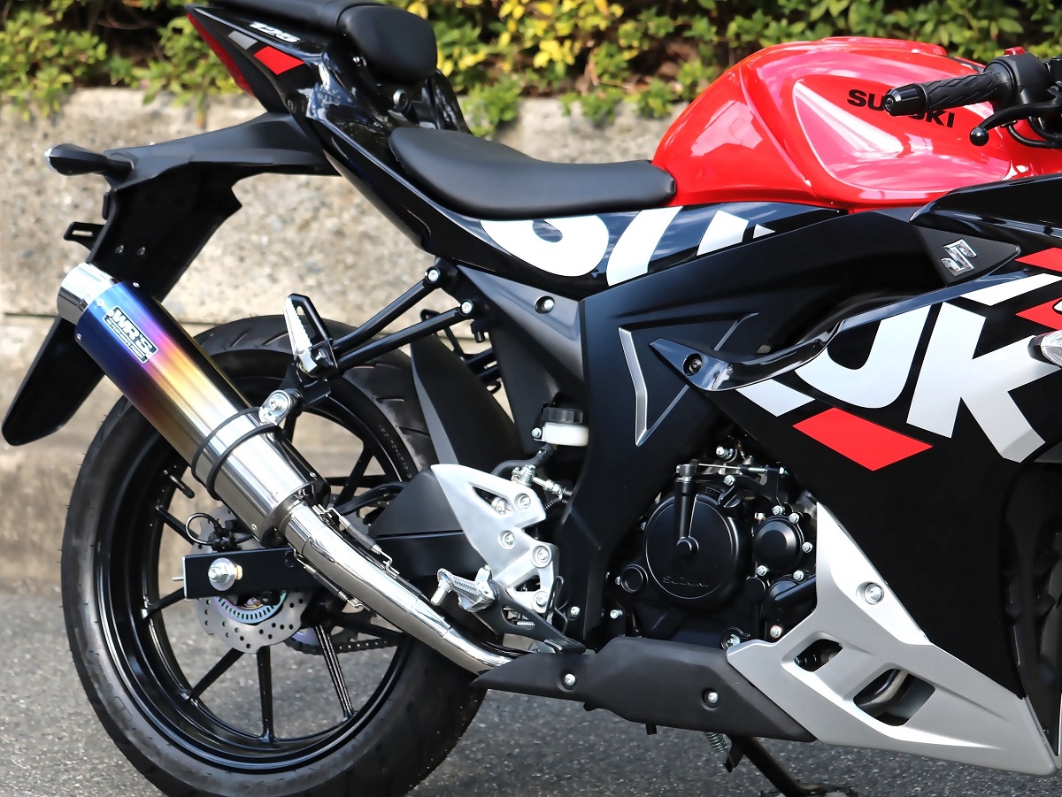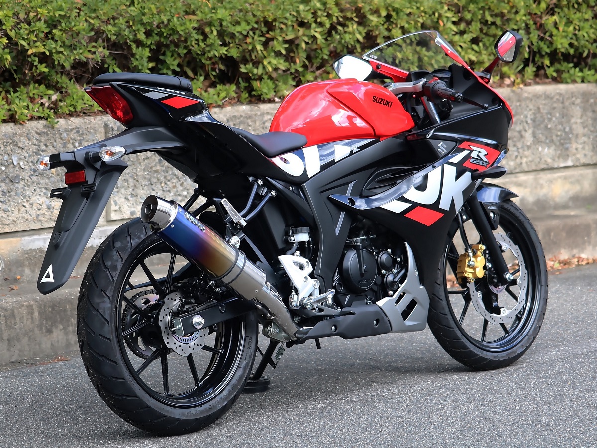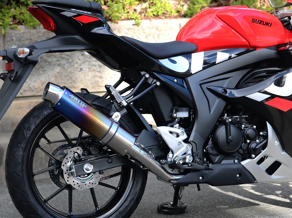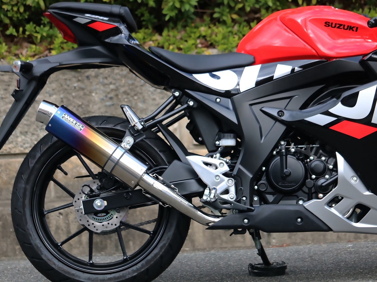ラウンドタイプフルエキゾーストマフラー 焼き色チタンサイレンサー JMCA認証 WR'S(ダブルアールズ) GSX-R125(8BJ-DL32D)