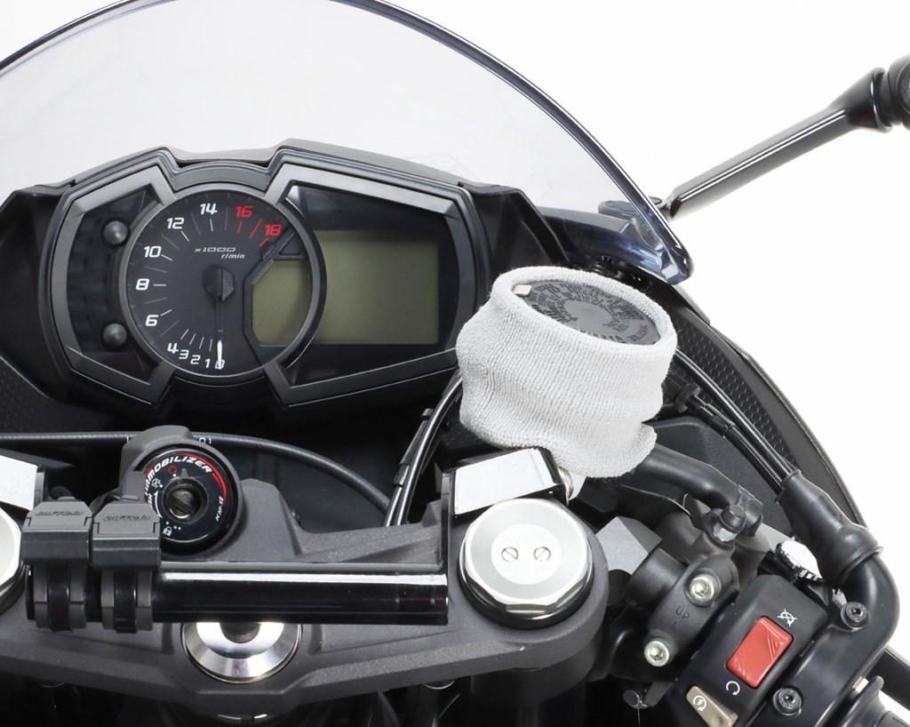 パイル生地でフィット性の高いリザーバタンクソック。フルードの漏れや飛散を防止します。パイル生地製サイズ:80mm×60mm