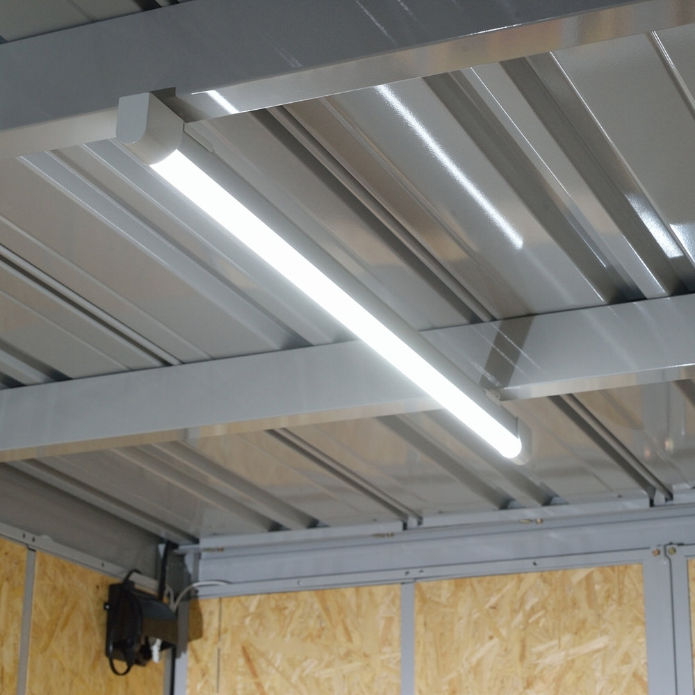 取付簡単な蛍光灯タイプのLEDライト。マグネット固定式で取り付け向きが自由に選べます。天井に縦向き、横向き、壁面への取り付けも可能です。全長900mmのLED蛍光灯タイプのチューブライトでシャッターを閉めきっても作業ができます。デイトナモーターサイクルガレージ BASICシリーズ用オプションサイズ:全長900×高さ45mmマグネット固定式100Vコンセント接続(ON/OFFスイッチ付き)コード長約2m、消費電力20W、昼光色、2200ルーメン
