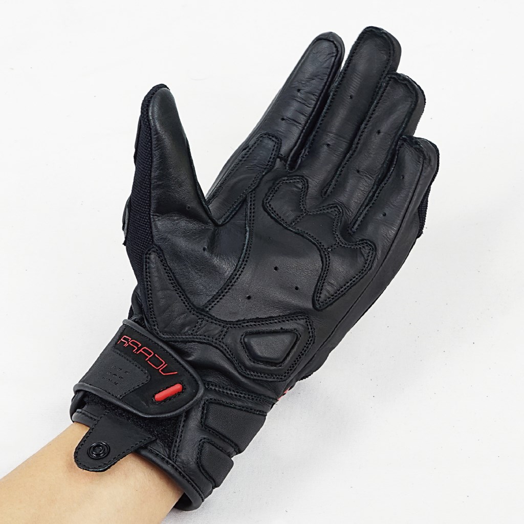 しなやかで耐久性の高い牛革をメインに、伸縮性のよいニットジャージ、柔軟なラバーナックルパッドを操作を妨げにくいフローティング仕様で設計し、操作性と堅牢さを兼ね揃えたアドベンチャーグローブです。要所に配置されたシリコンパーツやウレタンパッドが安心感を生み、アクティブライドを後押しします。MATERIAL:甲側/牛革、ニットジャージ、樹脂ナックルパッド、反射素材、タフレザー、掌側/牛革、スマートタッチレザーFUNCTION:両手タッチパネル対応、リフレクター