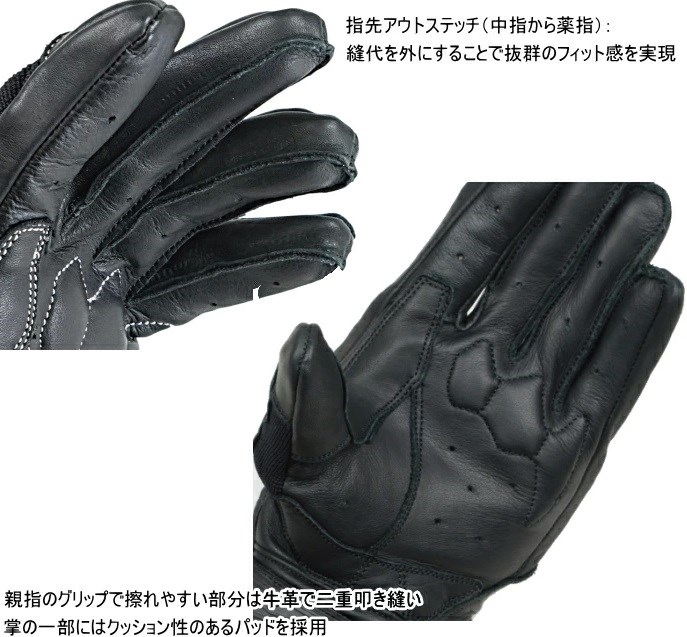 ツーリンググローブには不可欠となる軽快な運動性と、プロテクション性を併せ持つスポーツルックスのレギュラーグローブ。フローティングナックル採用で握り込み時のストレスを軽減します。スマートフォン対応/リフレクター素材採用で、街乗り・ロングツーリング 問わず、使い勝手の良いグローブです。MATERIAL:甲側/ニットジャージ、タフレザー、樹脂ナックルパッド、反射素材、牛革 掌側/牛革、スマートタッチレザーFUNCTION:両手タッチパネル対応(親指、人差し指)、リフレクター、指先アウトステッチ