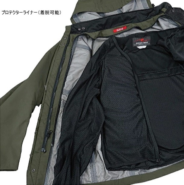 防水・防風・透湿性の3レイヤー構造デュアルテックスEXTRA。強力な撥水性を持つ高性能素材で、走行時の雨水の侵入を防ぎ湿気を外へ放出するためウェア内をドライに保ち快適です。フルプロテクション仕様のプロテクターライナーはファスナーワンタッチにて簡単にプロテクターごと裏地の取り外しが可能なため街着としても着用可能。ロング・ショートツーリングで名所・旧跡等も躊躇なく行け、そのまま街に出ても溶け込むようなさりげないデザイン。またベンチレーションを活用し、レイヤードを工夫すれば暖かい季節から寒い季節までフルシーズン活躍します。MATERIAL:表地/ナイロンデュアルテックスEXTRA 3レイヤー加工 裏地/スーパーエアメッシュ 襟裏/アイスムースメッシュPROTECTOR:胸・肩・肘・脊椎パッド標準装備 (フルパット仕様)