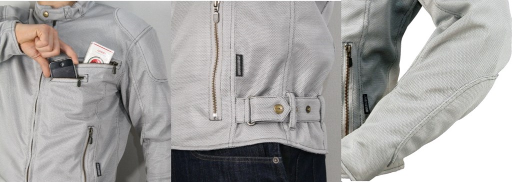 ビンテージ感たっぷりなデザインは時と場所、そしてバイクを選びません。メイン素材のスパックスメッシュはしなやかで強く、紫外線を通さずさわやかな風を通します。洗練されたスタイルがコーディネートの幅と行動範囲をグンと広げてくれます。MATERIAL:表地/スパックスメッシュNEW 裏地/スーパーエアメッシュ 襟裏/クールマックスメッシュPROTECTOR:肩・肘・脊椎パッド標準装備