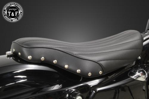 製品の仕様・シート素材:合皮製。・シートベース:FRP製。・シートカラー:ブラック。・取り付けステー:スチール製。・寸法:縦約500mm×横約270mm。■製品の特徴・クッション性を失わず衝撃吸収性も非常に高い一体型ウレタンフォーム(スポンジ)を使用し、型崩れしにくく快適に乗る事が出来ます。・シートベースには軽量で頑丈なFRPを使用しております。・フォームと表皮の間には収縮するフィルムを包装し、防水面も考慮しております。■注意事項・シートインナー(発泡ウレタンフォーム)は防水用の収縮する透明フィルムで覆われています。この特殊なフィルムは押したり、引っ張ったりしても簡単に破れるようなことはありません。このフィルム加工をすることにより雨水がウレタンフォームまで浸水することはありません。しかしながら表面合皮の縫い目から雨水が浸水し、ウレタンフォームとの間には雨水が入る可能性はございます。ただし、ウレタンフォームまで浸水することはありませんので良く乾いた布なので表面の水をふき取って頂き、天日干しして頂ければすぐに乾燥いたします。※十分な防水対策は施されておりますが完全防水ではございませんのでご了承下さい。【適合するスポーツスター】XL1200NS アイアン 1200(2018-2021年)XL1200X フォーティーエイト(2011-2021年)XL883N アイアン 883 (2010-2021年)XL1200XS フォーティーエイトスペシャル(2018〜2020年)XL1200CX ロードスター(2016〜2020年)XL1200V セブンティーツー(2012〜2016年)XL883R(2006年/2010〜2015年)XL1200N ナイトスター(2010〜2012年) XL883L ロー(2005-2006年/2010年)XL883(2004-2006年)XL1200R ロードスター(2004-2006年)■ガレージT&Fカスタムシートを取り付けする場合に、別途別売りのECMマウントプレートが必要となる車両年式は以下となります。ご注意ください、XL883N アイアン 883(2009年)XL883R(2007-2009年)XL1200N ナイトスター(2008-2009年)XL883L ロー(2007-2009年)XL883(2007-2009年)XL1200R ロードスター(2007年)XL50 50thアニバーサリーエディション(2007年)