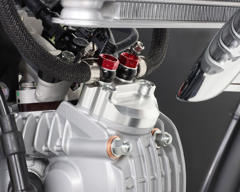 ボアアップをはじめとして、ハイチューンされたエンジンの必需品。高回転・高性能化したエンジンはその代償として膨大な熱を発し、ノーマルのままでは、オーバーヒート・焼き付き等、破損する場合がありますので、オイルクーラーの装着をお薦めします。スーパーオイルクーラーKIT(5段コア)は400ccクラスのオイルクーラーと同等の放熱量を誇り、レースを始め炎天下等の苛酷な条件下でも、安定したエンジン性能を発揮します。車種専用ステー付属。ボルトオン装着が可能です。オイルクーラーにはホース取り回し自由度が高いユニオンボルトを採用。またユニオンボルトには、カラーアルマイト処理済み。コンデンサー内オイル容量 150cc(5段コア)5段コアコンデンサー取り出しユニット付属センサー延長ハーネス付属ステー:スチール製ブラックオイル取出口:シリンダーヘッド上部タペットキャップオイル取出口:アルミ削り出し/シルバーアルマイト※ノーマルエアクリーナー使用不可(別途UNIフィルターKITが必要です。)