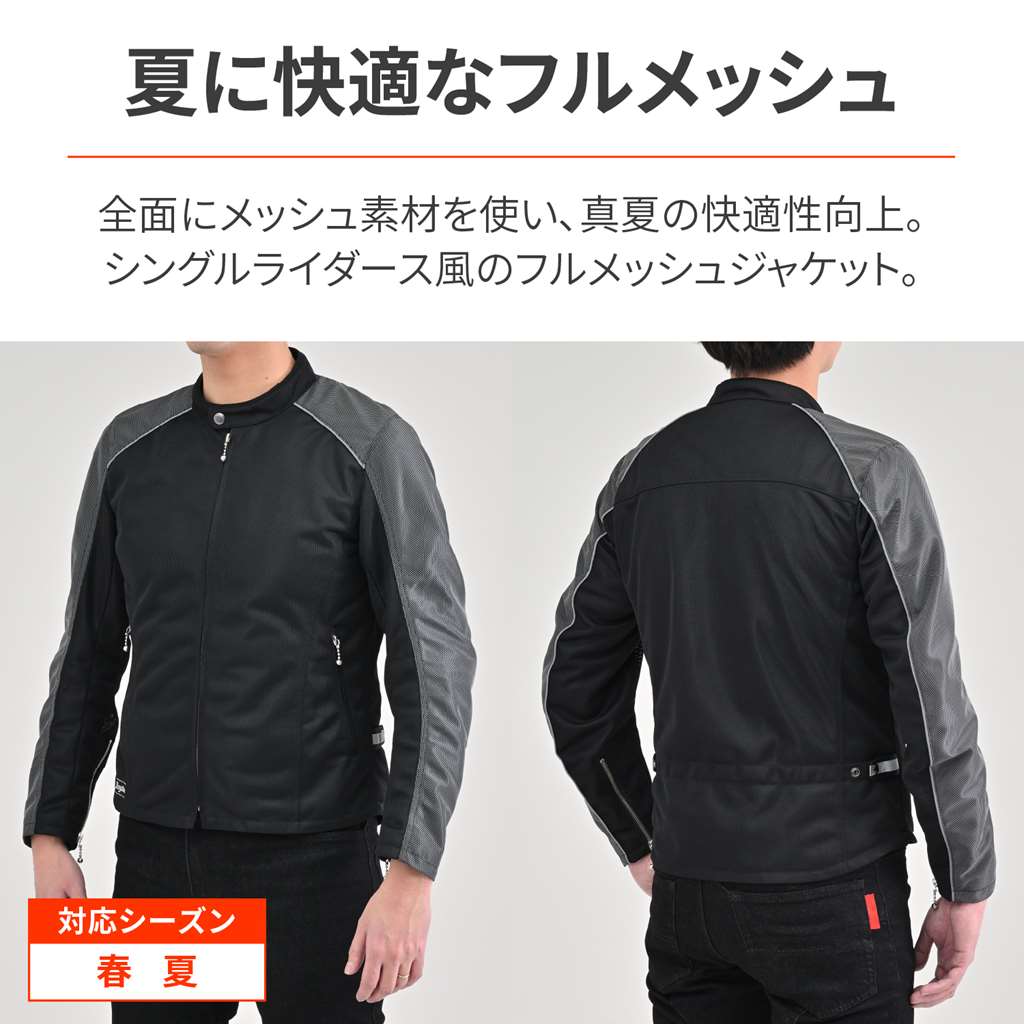 真夏の快適性を求めたシンプルなシングルライダース風デザインのフルメッシュジャケット。