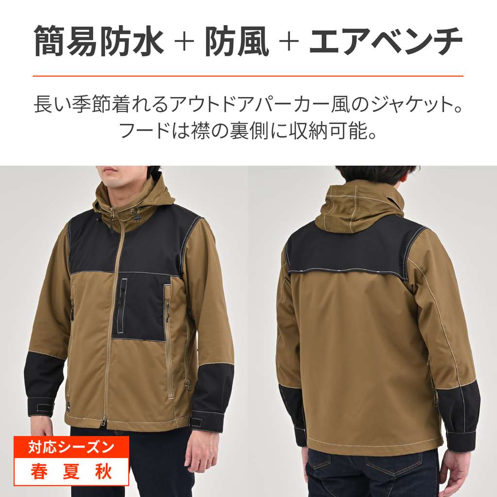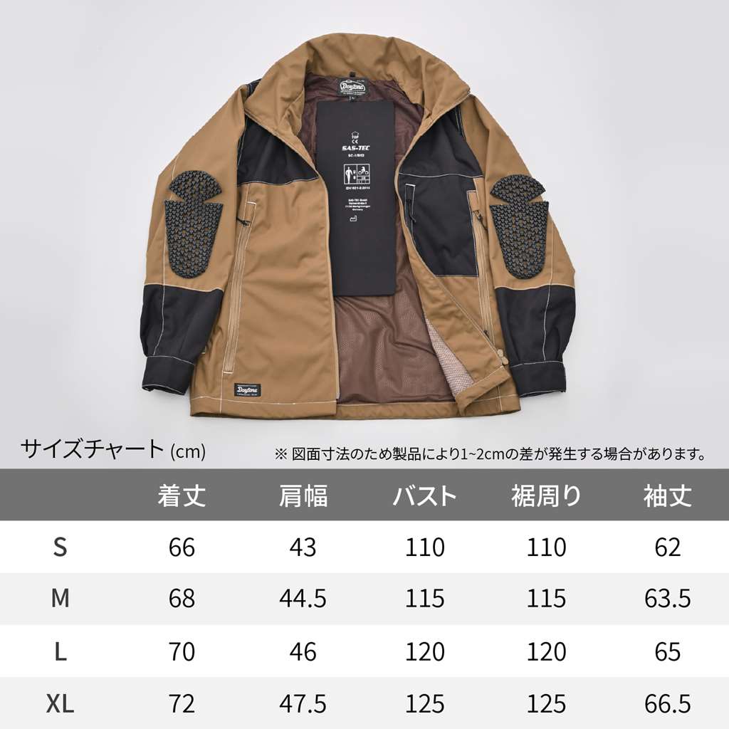 簡易防水+防風+大型エアベンチポケットにより長い季節着用可能なアウトドアパーカー風デザインのエアインテークパーカージャケット。フードは襟の裏側に丸めて固定可能。全てのポケットは裏地がメッシュ素材で、開口すると通気性が良くなります。フロント大型ポケットの内側に、携帯などの小物が入る小型ポケットを内蔵。ひじ、背中のプロテクターは、SAS-TECのTRIPLEFLEXタイプを標準装備。CE規格をクリアした安全性と、体にフィットする装着感の良いプロテクターが付属。胸部はCPS規格のプロテクターが装着できます。シーズン:春夏秋簡易防水+防風+大型エアベンチポケット付きで、長い季節着れるカジュアルパーカーひじ、背中プロテクター:SAS-TECのTRIPLEFLEXタイプを装備CE規格をクリアした安全性と、体にフィットする装着感の良いプロテクターが付属胸部はCPS規格のプロテクターに対応※図面寸法のため製品により1-2cmの差が発生する場合があります。