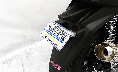 ノーマルのフェンダーを画像の様にカットする必要があります。ボルト止めでしっかり固定できますので安心して使用できます。商品を取り付けることによりタイヤが露出されワイルドな感じに仕上がります。ビッグスクーターの定番のカスタムで、ドレスアップのワンポイントには欠かせない逸品です!フェンダーレスキットは、長い純正フェンダー(泥よけ)を取り外すことにより、すっきりとしたリア周りに仕上げることを目的とした商品です。またリア周りのメンテナンスやレース等の使用における空気抵抗を抑える理由から、弊社製品はナンバープレートホルダーの角度を変更することができる設計になっています。しかし、道路交通法の保安基準ではリフレクター(反射板)の装着義務やナンバープレートの角度を約45度以内(後方からナンバープレートを目視で確認できる角度)とすることが定められております。ウイルズウィン社製品は仕様としてナンバープレートホルダーの角度調節することは可能ですが、一般公道等の道路交通法を遵守しなければならない道路では保安基準を超えた角度(正確に目視できない角度)での製品の使用は法律で禁じられておりますので絶対におやめください。
