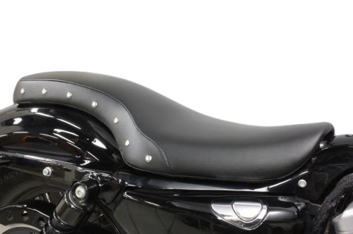シート素材:合皮製。シートベース:FRP製。シートカラー:ブラック。取り付けステー:スチール製。寸法:縦約690mm×横約270mm。製品の特徴クッション性を失わず衝撃吸収性も非常に高い一体型ウレタンフォーム(スポンジ)を使用し、型崩れしにくく快適に乗る事が出来ます。シートベースには軽量で頑丈なFRPを使用しております。注意事項シートインナー(発泡ウレタンフォーム)は防水用の収縮する透明フィルムで覆われています。この特殊なフィルムは押したり、引っ張ったりしても簡単に破れるようなことはありません。このフィルム加工をすることにより雨水がウレタンフォームまで浸水することはありません。しかしながら表面合皮の縫い目から雨水が浸水し、ウレタンフォームとの間には雨水が入る可能性はございます。ただし、ウレタンフォームまで浸水することはありませんので良く乾いた布なので表面の水をふき取って頂き、天日干しして頂ければすぐに乾燥いたします。※十分な防水対策は施されておりますが完全防水ではございませんのでご了承下さい。【適合するスポーツスター】XL1200NS アイアン 1200(2018〜2021年)XL1200X フォーティーエイト(2011〜2021年)XL883N アイアン 883(2010〜2021年)XL1200XS フォーティーエイトスペシャル(2018〜2020年)XL1200CX ロードスター(2016〜2020年)XL1200V セブンティーツー(2012〜2016年)XL883R(2010〜2015年)/2006年XL1200N ナイトスター(2010〜2012年)XL883L ロー(2010年/2005〜2006年)XL883(2004〜2006年)XL1200R ロードスター(2004〜2006年)※2007年〜2009年モデルは不適合となります。一部別売りのECMマウントを取り付けることで装着可能になる車種がございます。