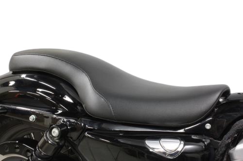 シート素材:合皮製。シートベース:FRP製。シートカラー:ブラック。取り付けステー:スチール製。寸法:縦約690mm×横約270mm。製品の特徴クッション性を失わず衝撃吸収性も非常に高い一体型ウレタンフォーム(スポンジ)を使用し、型崩れしにくく快適に乗る事が出来ます。シートベースには軽量で頑丈なFRPを使用しております。注意事項シートインナー(発泡ウレタンフォーム)は防水用の収縮する透明フィルムで覆われています。この特殊なフィルムは押したり、引っ張ったりしても簡単に破れるようなことはありません。このフィルム加工をすることにより雨水がウレタンフォームまで浸水することはありません。しかしながら表面合皮の縫い目から雨水が浸水し、ウレタンフォームとの間には雨水が入る可能性はございます。ただし、ウレタンフォームまで浸水することはありませんので良く乾いた布なので表面の水をふき取って頂き、天日干しして頂ければすぐに乾燥いたします。※十分な防水対策は施されておりますが完全防水ではございませんのでご了承下さい。【適合するスポーツスター】XL1200NS アイアン 1200(2018〜2021年)XL1200X フォーティーエイト(2011〜2021年)XL883N アイアン 883(2010〜2021年)XL1200XS フォーティーエイトスペシャル(2018〜2020年)XL1200CX ロードスター(2016〜2020年)XL1200V セブンティーツー(2012〜2016年)XL883R(2010〜2015年)/2006年XL1200N ナイトスター(2010〜2012年)XL883L ロー(2010年/2005〜2006年)XL883(2004〜2006年)XL1200R ロードスター(2004〜2006年)※2007年〜2009年モデルは不適合となります。一部別売りのECMマウントを取り付けることで装着可能になる車種がございます。