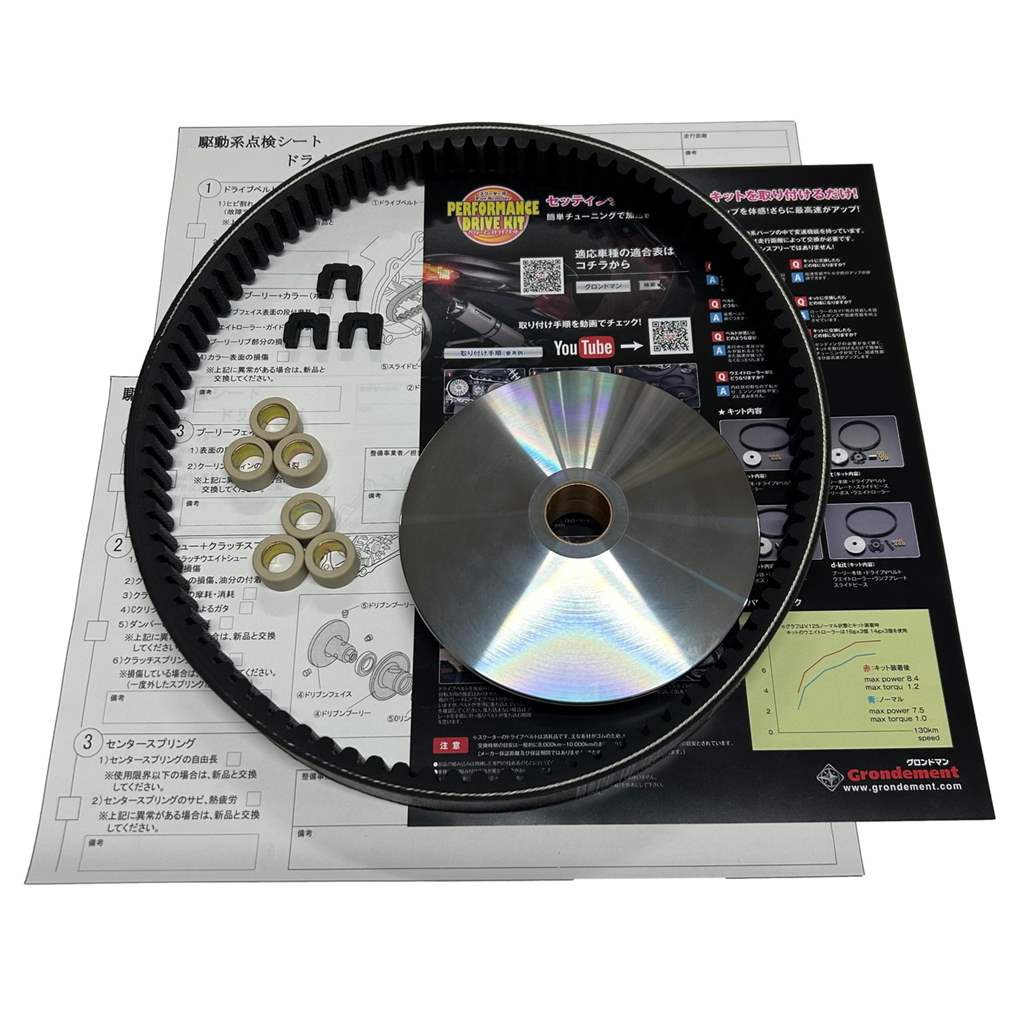 セッティングの必要が全く無く、 キットを取り付けるだけで簡単にチューニングが可能。加速性能やトルク感のアップが体感できます。【キット内容】日本製ドライブ V ベルトプーリーウエイトローラースライドピース