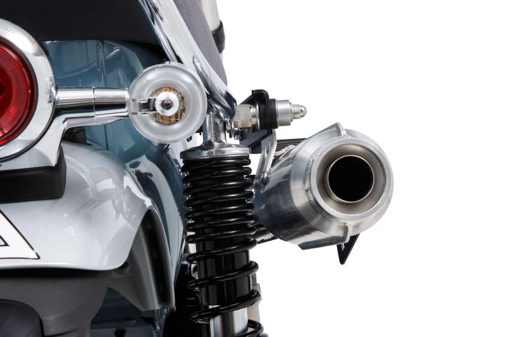 アルミサイレンサーと遮熱チャンバーを備える2重管ミドルパイプを組み合わせることによりマフラーのスタイルに一体感を持たせた仕上がりになっています。