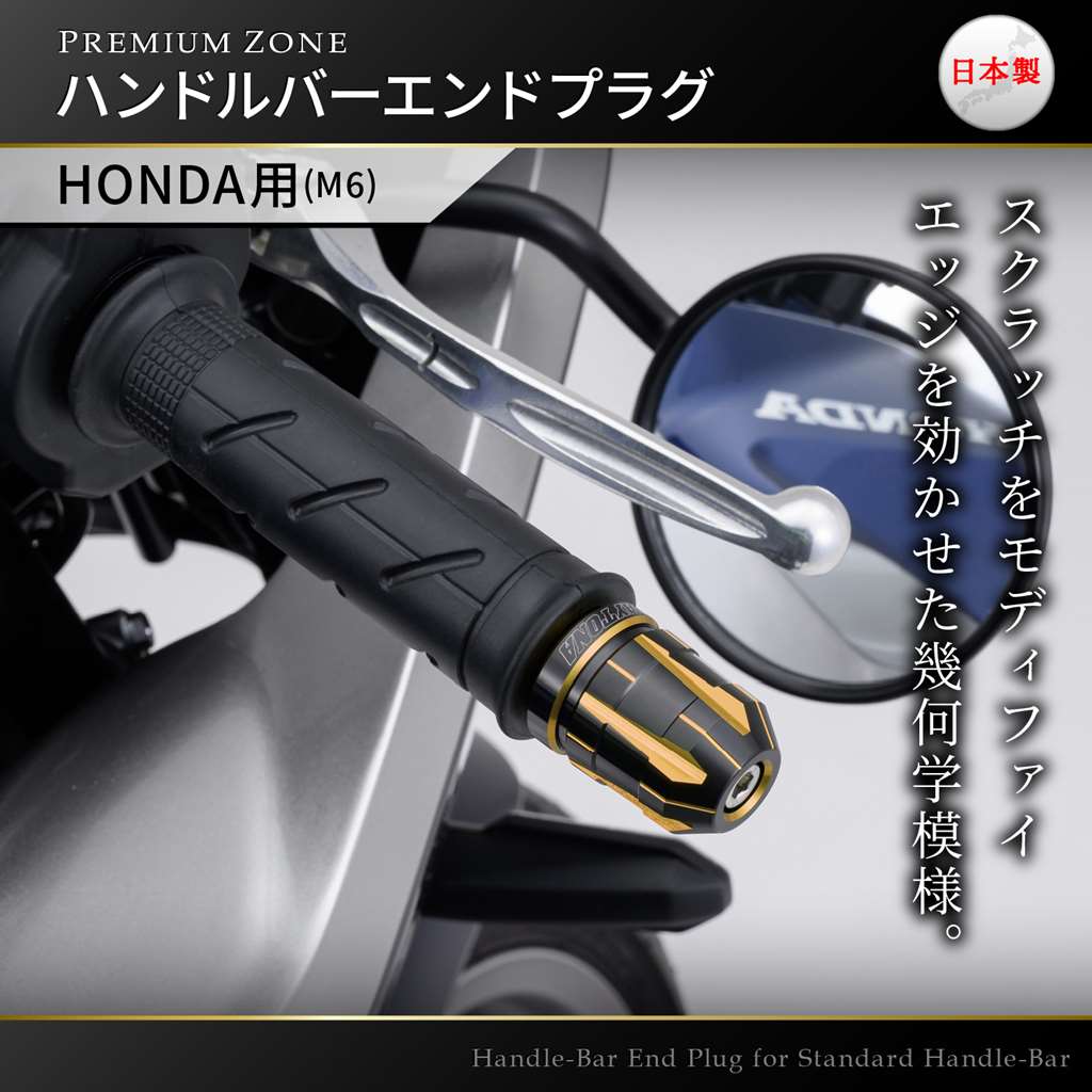 「創」と「麗」を極めた逸品PREMIUM ZONEシリーズのバーエンド。アルミの無垢素材から繊細で丁寧な加工で削り出し、2色の色彩がきわだつ優美なデュアルアルマイト仕上げ。こだわりの日本製。スクラッチにエッジを効かせ幾何学模様にモディファイしたTECHNO。M6ボルトで固定されているHONDA車の純正ハンドルに対応。付属カラーの組み合わせにより幅広い車種へ装着が可能です。HONDA車の純正インナーウエイトはそのままお使いいただけます。【デイトナ社確認車両】CB1300SF/SB/ST/SP(98-22)、CB1100/EX/RS(10-22)、CBR1000RR(07-10)、HAWK11(23)CB1000R(18-21)、NC750X(14-21)、NC750S(14-19)、NC700X(12-13)NC700S(12-13)、INTEGRA(12-14)、CB750(92-08)、CB650R(19-22)CBR650R(19-23)、CBR600RR(07-13,21-22)、CB400SF/SB(14-21)、CB400SS(04)CBR400R(16-22)、CB400FOUR(97)、400X(19-22)、CB250R(18-23)CB250F(17)、CBR250RR(17-22)、CBR250R(11-13)、CRF250RALLY(21-22)FORZA(04-18,21-22) MF08/MF10/MF12/MF13/MF15、FAZE(09-12) MF11、VTR250/F(13-17)PCX160(21)、ADV150(20-22) ※国内仕様のみ、PCX150(18/4-20)PCX125(18/4-21)、グロム(13-21)、LEAD125(13-22)、ハンターカブ(20-23)ダックス125(23)、モンキー125(22)、DIO110(15-17)、クロスカブ110(18-22)トゥデイ(12)、MT-09/SP(21-22)、YZF-R7(22)、GSX-1300Rハヤブサ(08-17)、GSX-S750(17)、バーグマン200(20)スウィッシュ(18-20)、アドレス125(18-20)GSX-R125(18-21)M6ボルトで固定されているHONDA車の純正ハンドルに対応アルミ削り出しで2色のコントラストが際立つデュアルアルマイト仕上げHONDA車の純正インナーウエイトはそのまま使用可能※本体はアルミ製です。メーカー別ハンドルに対応したアタッチメントはスチール製黒塗装仕上げです。※ハンドル最大幅が変更となります。車種によっては記載変更が必要です。