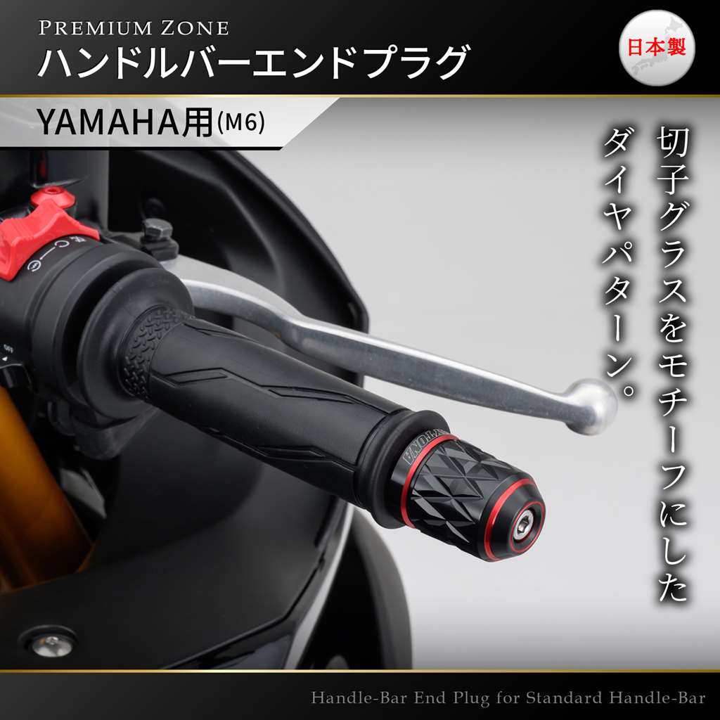 「創」と「麗」を極めた逸品PREMIUM ZONEシリーズのバーエンド。アルミの無垢素材から繊細で丁寧な加工で削り出し、2色の色彩がきわだつ優美なデュアルアルマイト仕上げ。こだわりの日本製。カスタムの定番でもあるダイヤ形状を、工芸品「江戸切子」をモチーフに表現したKIRIKO。M6ボルトで固定されているYAMAHA車の純正ハンドルに対応。YAMAHA車の純正インナーウエイトはそのままお使いいただけます。【デイトナ社確認車両】YZF-R3(15-22)、MT-03(16-22)、YZF-R25(15-22)、MT-25(16-22)N-MAX155(17-20)、N-MAX125(16-20 ※(21)モデル不可)M6ボルトで固定されているYAMAHA車の純正ハンドルに対応アルミ削り出しで2色のコントラストが際立つデュアルアルマイト仕上げYAMAHA車の純正インナーウエイトはそのまま使用可能※本体はアルミ製です。メーカー別ハンドルに対応したアタッチメントはスチール製黒塗装仕上げです。※ハンドル最大幅が変更となります。車種によっては記載変更が必要です。
