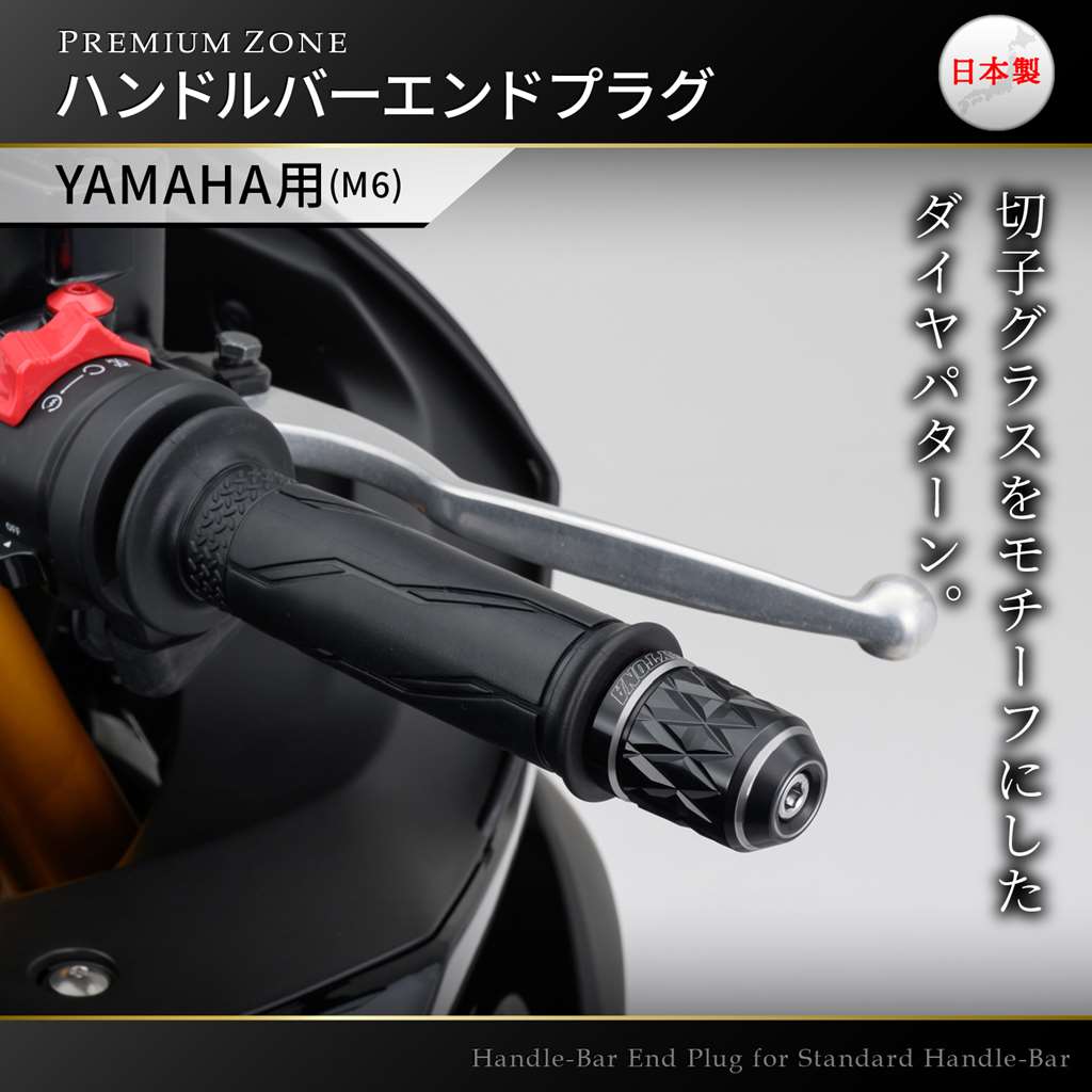 「創」と「麗」を極めた逸品PREMIUM ZONEシリーズのバーエンド。アルミの無垢素材から繊細で丁寧な加工で削り出し、2色の色彩がきわだつ優美なデュアルアルマイト仕上げ。こだわりの日本製。カスタムの定番でもあるダイヤ形状を、工芸品「江戸切子」をモチーフに表現したKIRIKO。M6ボルトで固定されているYAMAHA車の純正ハンドルに対応。YAMAHA車の純正インナーウエイトはそのままお使いいただけます。【デイトナ社確認車両】YZF-R3(15-22)、MT-03(16-22)、YZF-R25(15-22)、MT-25(16-22)N-MAX155(17-20)、N-MAX125(16-20 ※(21)モデル不可)M6ボルトで固定されているYAMAHA車の純正ハンドルに対応アルミ削り出しで2色のコントラストが際立つデュアルアルマイト仕上げYAMAHA車の純正インナーウエイトはそのまま使用可能※本体はアルミ製です。メーカー別ハンドルに対応したアタッチメントはスチール製黒塗装仕上げです。※ハンドル最大幅が変更となります。車種によっては記載変更が必要です。