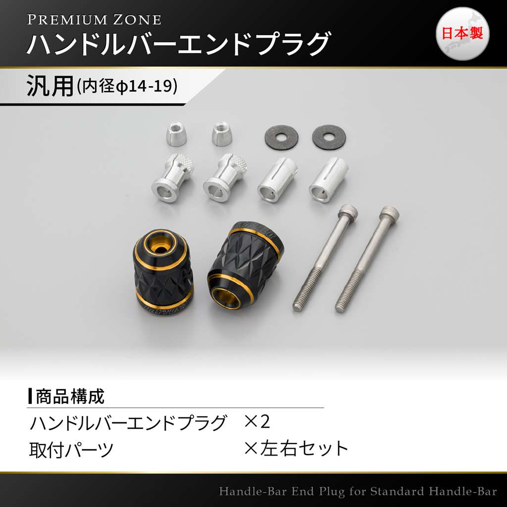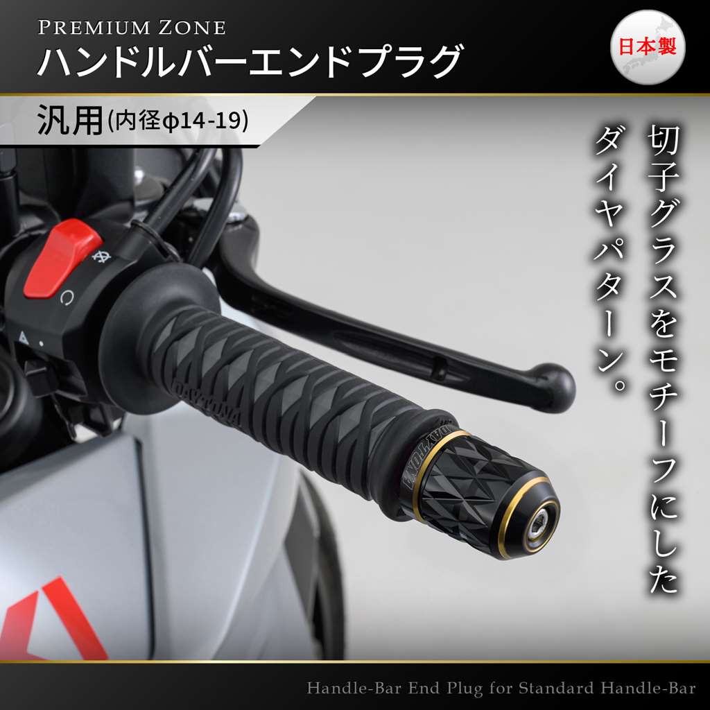 「創」と「麗」を極めた逸品PREMIUM ZONEシリーズのバーエンド。アルミの無垢素材から繊細で丁寧な加工で削り出し、2色の色彩がきわだつ優美なデュアルアルマイト仕上げ。こだわりの日本製。カスタムの定番でもあるダイヤ形状を、工芸品「江戸切子」をモチーフに表現したKIRIKO。中空ハンドル 内径φ14-19ハンドルに対応。一部のSUZUKI車や市販品に多い中空パイプハンドル、エンド貫通タイプのグリップに対応します。【デイトナ社確認車両】中空汎用ハンドル(内径φ14-19)GB350/S(21-22)、ホーネット250(96ー01)、CB125R(18ー22)、ADV160(23)ライブDIO-ZX(94ー98)、ライブDIO-ZX(00ー02)、シグナスグリファス(22)、XFORCE(22)JOG125(22)、GSX1400(02-05)、KATANA(19-21)、GSX-S1000/F(16-20)GSX-R1000(09)、GSX-S750(18-21)、SV650/X(16-21)、スカイウェイブ650LX(11)V-ストローム650(17)、GSX250R(17-22)、GSR250/S/F(12-17)、GSR400(06-10)グラディウス400(09-12)、バーグマン400(18)、グラストラッカー(09ー14)、V-ストローム250(17)※ナックルカバーの取り外しが必要ジクサー250/SF250(20-22)、VanVan200(02ー16)、ジクサー150(17-22)、GSX-S125(18ー21)F250(20-22)、VanVan200(02ー16)、ジクサー150(17-22)、GSX-S125(18ー21)中空ハンドル 内径φ14-19ハンドルに対応一部のSUZUKI車や市販品に多い中空パイプハンドル、エンド貫通タイプのグリップに対応アルミ削り出しで2色のコントラストが際立つデュアルアルマイト仕上げ※純正ハンドルでエンド部にネジが溶接されているタイプには取り付けできません。※本体はアルミ製です。メーカー別ハンドルに対応したアタッチメントはスチール製黒塗装仕上げです。※ハンドル最大幅が変更となります。車種によっては記載変更が必要です。