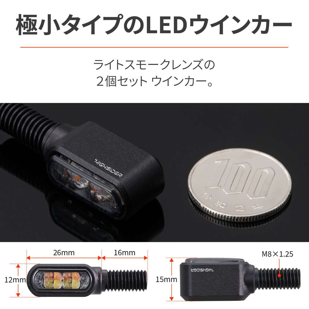 近未来をコンセプトにした極小タイプのLEDウインカー。ポジションランプ付きのフロント側専用ウインカー。ドイツ生まれのバイク用LEDウインカーフロント専用 ホワイトポジション付きECE規格認証クリアした車検対応品アルミニウム製 / ライトスモークレンズ左右セット※消費電力が少ないため、車両によってはLED対応ウインカーリレー(品番:99109/99989)が別途必要です。※ホワイトポジション付きフロントウインカーは、フロント側専用品です。