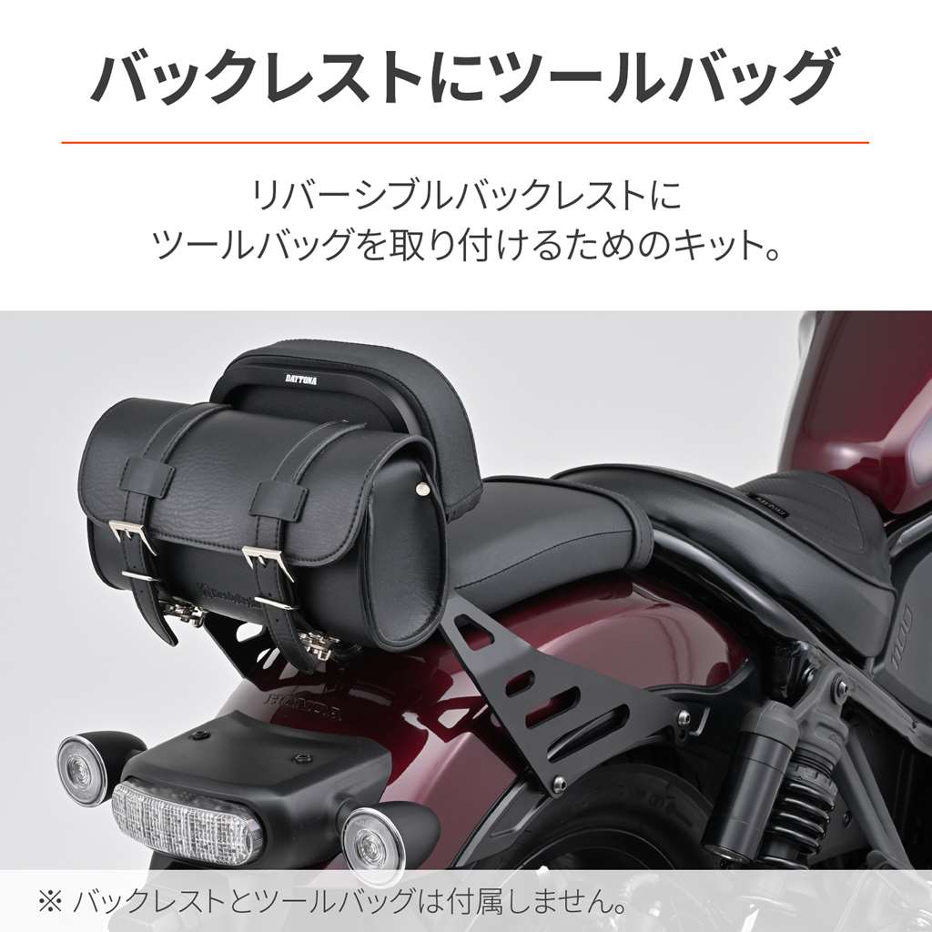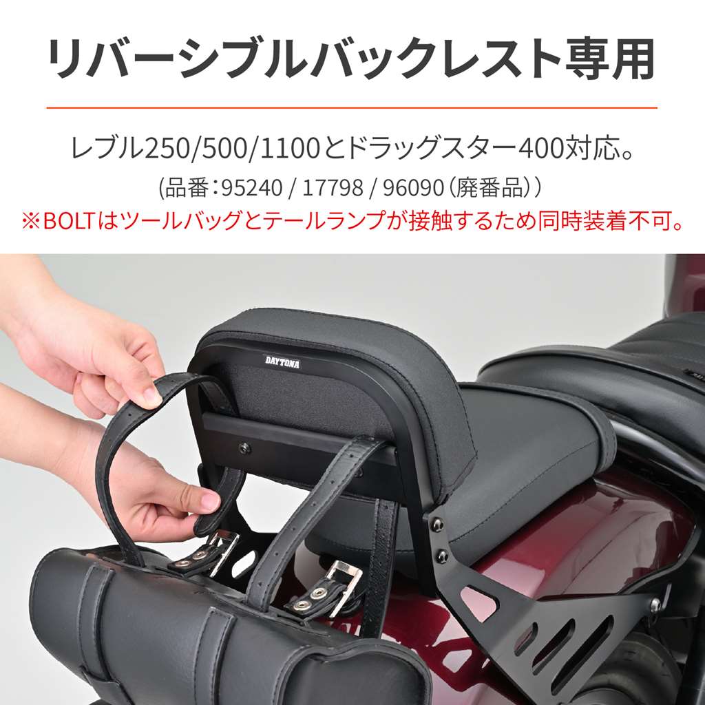 【対応デイトナ社ツールバッグ】ヘンリービギンズ DHS-7(品番:98771) / DHS-8(品番:98773)<br>【対応リバーシブルバックレスト】レブル250/500(品番:95240)、レブル1100(品番:17798)、ドラッグスター400(品番:96090(廃番品))