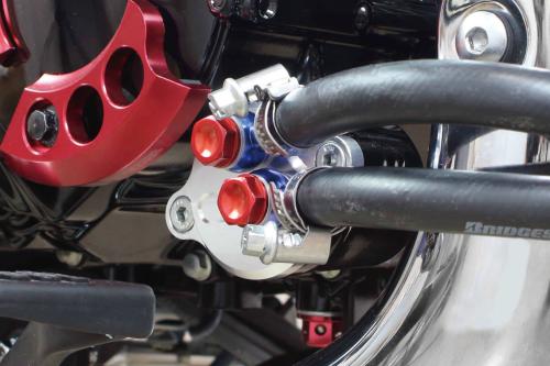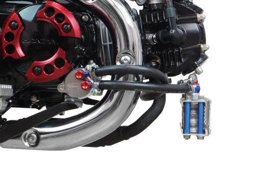 オイルクーラー本体の取り付け位置ノーマルシリンダーヘッドのタペットカバーに専用の取り付けブラケットを装着し、シリンダーヘッド下にオイルクーラー本体を固定します。オイル取り出し口純正クラッチカバーのオイルフィルター部に専用のオイルフィルターカバーを装着し、オイルの取り出しを行います。オイルフィルターカバーの内部にはリリーフバルブ機構を備えています。更にネオジウムマグネットを内部に装備している為、エンジンオイルに混じった鉄粉を吸着し、オイルフィルターへの汚れを軽減します。コンパクトクール本体についてクーラー本体は冷却効果に優れたコンパクトクールを採用。オイルクーラーを取付けることで、エンジンボアアップに伴う油温上昇を抑えることが出来ます。オイルクーラープレート、ガードが標準装備。注意事項※ノーマルシリンダーヘッド、ノーマルクラッチカバー専用です。※SP武川製エンジンガードとの同時装着は出来ません。※悪路走行やオフロードでの使用は、行わないで下さい。※オイル量は通常規定オイル量に3フィン:約40ccを追加して下さい。