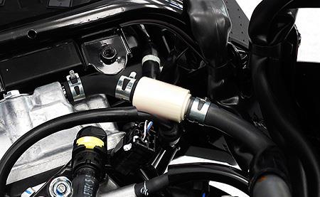 クランクケース内に発生する圧力抵抗を減らしパワーロスを無くすパーツで、手軽かつローコストで特性を変更できる商品です。ブローバイ還元パイプに割り込ませて装着する事によって、エンジンブレーキ低減、レスポンス向上、燃費アップ、始動性良好、オイル寿命延長の効果が得られます。