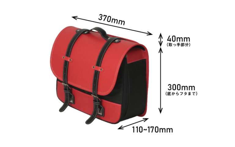 サイズ:H300×W370×D110〜170(mm)重量:およそ1.5(付属品も含む)材質:本体:PVCレザー/ポリエステルレインカバー:ポリエステル容量:およそ10L〜15L取付方法本製品の装着には、市販のバッグサポートが必要です。上部の取り付けベルト2か所、下部の取り付けコード2か所で固定します。裏面中央部にある黒い帯にバッグサポートを差し込むとより安定します。※特殊な形状のバッグサポートの場合取り付けができない場合がございます。※マフラーとの接触を防ぐため、左側に装着してください。商品の特徴・容量を10Lから15Lへアップできるので、ツーリング先で荷物が増えても安心・バイクの車体カラーに合わせて選べる、カラーバリエーションの豊富なサイドバッグ・持ち歩きに便利な持ち手付き・便利な内ポケットが2か所・雨の日にうれしいレインカバーが付属・ランドセルのようなひねり金具で開け閉めラクラク用途バイクでのツーリング・アウトドア・通勤・通学・キャンプなど付属品・本体・取り付けベルト(2本)・取り付けコード(2本)・雨除けレインカバー生産地:中国(企画/開発:大久保製作所)注意:本製品の装着には、市販のバッグサポートが必要です。装着時、取り付けベルトや取り付けコードの余った部分がタイヤに巻き込まれることがないよう注意して固定してください。法定速度を超える速度での走行はおやめください。風圧などにより、バッグの外れや破損の原因となります。5kg以上の荷物を入れないでください。走行に支障が出ない位置に取り付けを行ってください。本製品は縫製品です。完全防水ではありません。雨が予想される場合は、荷物をあらかじめ防水バッグなどに入れてからバッグの中に収納してください。レインカバーを付けても雨が侵入してしまう場合がございます。走行前には必ず各パーツが外れていないか確認してください。特に取付部に緩みがないか確認してください。そのまま放置して走行すると、バッグやベルトが車輪に巻き込まれたり、後続車の損傷の原因となる恐れがあり大変危険です。鋭利な突起物などでひっかいたりしないでください。汎用品ではありますが、車種や仕様によっては装着できない場合があります。紫外線及び照明などにより、通常のご使用でも若干の変退色は避けられませんのでご了承ください。経年による部品や生地の劣化が見られましたら、新しい製品にお取替えください。ベルトや取っ手をもって振りまわすなどの行為はおやめください。破損の原因となります。ガソリンやオイルが付着しないようご注意ください。生地や金具の劣化の原因となります。他の素材と密着すると、色移りする可能性があります。製品がエンジンやマフラー等の高温部分に接触すると、溶ける恐れがありますので注意してお使いください。本体バッグ、レインカバーともに、雨ざらしや直射日光の当たる場所での保管、駐車は退色や変形など劣化の原因になります。また、長期間つけっぱなしでのご使用はお避け下さい。ロットによって若干の色差が発生する場合がございます。お手入れ方法汚れが付いた場合はすぐに水拭きし、乾いた布でふき取ってから、乾燥させてください。変色や劣化の原因となりますので、定期的にほこりや汚れをふき取ってください。湿度が低く、直射日光が当たらない場所で保管してください。