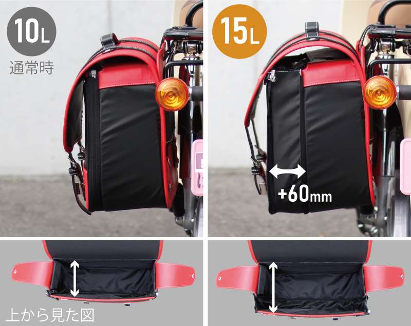 サイズ:H300×W370×D110〜170(mm)重量:およそ1.5(付属品も含む)材質:本体:PVCレザー/ポリエステルレインカバー:ポリエステル容量:およそ10L〜15L取付方法本製品の装着には、市販のバッグサポートが必要です。上部の取り付けベルト2か所、下部の取り付けコード2か所で固定します。裏面中央部にある黒い帯にバッグサポートを差し込むとより安定します。※特殊な形状のバッグサポートの場合取り付けができない場合がございます。※マフラーとの接触を防ぐため、左側に装着してください。商品の特徴・容量を10Lから15Lへアップできるので、ツーリング先で荷物が増えても安心・バイクの車体カラーに合わせて選べる、カラーバリエーションの豊富なサイドバッグ・持ち歩きに便利な持ち手付き・便利な内ポケットが2か所・雨の日にうれしいレインカバーが付属・ランドセルのようなひねり金具で開け閉めラクラク用途バイクでのツーリング・アウトドア・通勤・通学・キャンプなど付属品・本体・取り付けベルト(2本)・取り付けコード(2本)・雨除けレインカバー生産地:中国(企画/開発:大久保製作所)注意:本製品の装着には、市販のバッグサポートが必要です。装着時、取り付けベルトや取り付けコードの余った部分がタイヤに巻き込まれることがないよう注意して固定してください。法定速度を超える速度での走行はおやめください。風圧などにより、バッグの外れや破損の原因となります。5kg以上の荷物を入れないでください。走行に支障が出ない位置に取り付けを行ってください。本製品は縫製品です。完全防水ではありません。雨が予想される場合は、荷物をあらかじめ防水バッグなどに入れてからバッグの中に収納してください。レインカバーを付けても雨が侵入してしまう場合がございます。走行前には必ず各パーツが外れていないか確認してください。特に取付部に緩みがないか確認してください。そのまま放置して走行すると、バッグやベルトが車輪に巻き込まれたり、後続車の損傷の原因となる恐れがあり大変危険です。鋭利な突起物などでひっかいたりしないでください。汎用品ではありますが、車種や仕様によっては装着できない場合があります。紫外線及び照明などにより、通常のご使用でも若干の変退色は避けられませんのでご了承ください。経年による部品や生地の劣化が見られましたら、新しい製品にお取替えください。ベルトや取っ手をもって振りまわすなどの行為はおやめください。破損の原因となります。ガソリンやオイルが付着しないようご注意ください。生地や金具の劣化の原因となります。他の素材と密着すると、色移りする可能性があります。製品がエンジンやマフラー等の高温部分に接触すると、溶ける恐れがありますので注意してお使いください。本体バッグ、レインカバーともに、雨ざらしや直射日光の当たる場所での保管、駐車は退色や変形など劣化の原因になります。また、長期間つけっぱなしでのご使用はお避け下さい。ロットによって若干の色差が発生する場合がございます。お手入れ方法汚れが付いた場合はすぐに水拭きし、乾いた布でふき取ってから、乾燥させてください。変色や劣化の原因となりますので、定期的にほこりや汚れをふき取ってください。湿度が低く、直射日光が当たらない場所で保管してください。