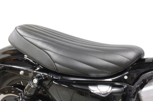 製品の仕様・シート素材:合皮製。・シートベース:FRP製。・シートカラー:ブラック。・取り付けステー:スチール製。製品の特徴・クッション性を失わず衝撃吸収性も非常に高い一体型ウレタンフォーム(スポンジ)を使用し、型崩れしにくく快適に乗る事が出来ます。・シートベースには軽量で頑丈なFRPを使用しております。・フォームと表皮の間には収縮するフィルムを包装し、防水面も考慮しております。【適合するスポーツスター】XL1200NS アイアン 1200(2018〜2021年)XL1200X フォーティーエイト(2011〜2021年)XL883N アイアン 883(2010〜2021年)XL1200XS フォーティーエイトスペシャル(2018〜2020年)XL1200CX ロードスター(2016〜2020年)XL1200V セブンティーツー(2012〜2016年)XL883R(2010〜2015年)/2006年XL1200N ナイトスター(2010〜2012年)XL883L ロー(2010年/2005〜2006年)XL883(2004〜2006年)XL1200R ロードスター(2004〜2006年)※2007年〜2009年モデルは不適合となります。一部別売りのECMマウントを取り付けることで装着可能になる車種がございます。注意事項・シートインナー(発泡ウレタンフォーム)は防水用の収縮する透明フィルムで覆われています。この特殊なフィルムは押したり、引っ張ったりしても簡単に破れるようなことはありません。このフィルム加工をすることにより雨水がウレタンフォームまで浸水することはありません。しかしながら表面合皮の縫い目から雨水が浸水し、ウレタンフォームとの間には雨水が入る可能性はございます。ただし、ウレタンフォームまで浸水することはありませんので良く乾いた布なので表面の水をふき取って頂き、天日干しして頂ければすぐに乾燥いたします。※十分な防水対策は施されておりますが完全防水ではございませんのでご了承下さい。