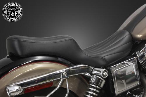 製品の仕様・シート素材:合皮製。・シートベース:FRP製。・シートインナー:発砲ウレタンフォームを使用。・シートカラー:ブラック。・取り付けステー:スチール製。ブラック仕上げ。製品の特徴・クッション性を失わず衝撃吸収性も非常に高い一体型ウレタンフォーム(スポンジ)を使用し、型崩れしにくく快適に乗る事が出来ます。・シートベースには軽量で頑丈なFRPを使用しております。・フォームと表皮の間には収縮するフィルムを包装し、防水面も考慮しております。注意事項・シートインナー(発泡ウレタンフォーム)は防水用の収縮する透明フィルムで覆われています。この特殊なフィルムは押したり、引っ張ったりしても簡単に破れるようなことはありません。このフィルム加工をすることにより雨水がウレタンフォームまで浸水することはありません。しかしながら表面合皮の縫い目から雨水が浸水し、ウレタンフォームとの間には雨水が入る可能性はございます。ただし、ウレタンフォームまで浸水することはありませんので良く乾いた布なので表面の水をふき取って頂き、天日干しして頂ければすぐに乾燥いたします。※十分な防水対策は施されておりますが完全防水ではございませんのでご了承下さい。適合車両FXDL(ローライダー)1996〜2005年FXDC(スーパーグライドカスタム)2005年FXD(スーパーグライド)1996〜2005年FXDLI(ローライダーインジェクション)2004〜2005年FXDX(スーパーグライドスポーツ)2002〜2005年FXDXT(スーパーグライドTスポーツ)1999年〜2003年FXDS CONV(コンバーチブル)1996年〜2000年