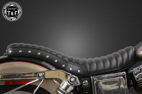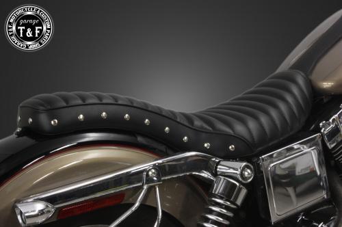 製品の仕様・シート素材:合皮製。・シートベース:FRP製。・シートインナー:発砲ウレタンフォームを使用。・シートカラー:ブラック。・取り付けステー:スチール製。ブラック仕上げ。製品の特徴・クッション性を失わず衝撃吸収性も非常に高い一体型ウレタンフォーム(スポンジ)を使用し、型崩れしにくく快適に乗る事が出来ます。・シートベースには軽量で頑丈なFRPを使用しております。・フォームと表皮の間には収縮するフィルムを包装し、防水面も考慮しております。注意事項・シートインナー(発泡ウレタンフォーム)は防水用の収縮する透明フィルムで覆われています。この特殊なフィルムは押したり、引っ張ったりしても簡単に破れるようなことはありません。このフィルム加工をすることにより雨水がウレタンフォームまで浸水することはありません。しかしながら表面合皮の縫い目から雨水が浸水し、ウレタンフォームとの間には雨水が入る可能性はございます。ただし、ウレタンフォームまで浸水することはありませんので良く乾いた布なので表面の水をふき取って頂き、天日干しして頂ければすぐに乾燥いたします。※十分な防水対策は施されておりますが完全防水ではございませんのでご了承下さい。適合車両FXDL(ローライダー)1996〜2005年FXDC(スーパーグライドカスタム)2005年FXD(スーパーグライド)1996〜2005年FXDLI(ローライダーインジェクション)2004〜2005年FXDX(スーパーグライドスポーツ)2002〜2005年FXDXT(スーパーグライドTスポーツ)1999年〜2003年FXDS CONV(コンバーチブル)1996年〜2000年