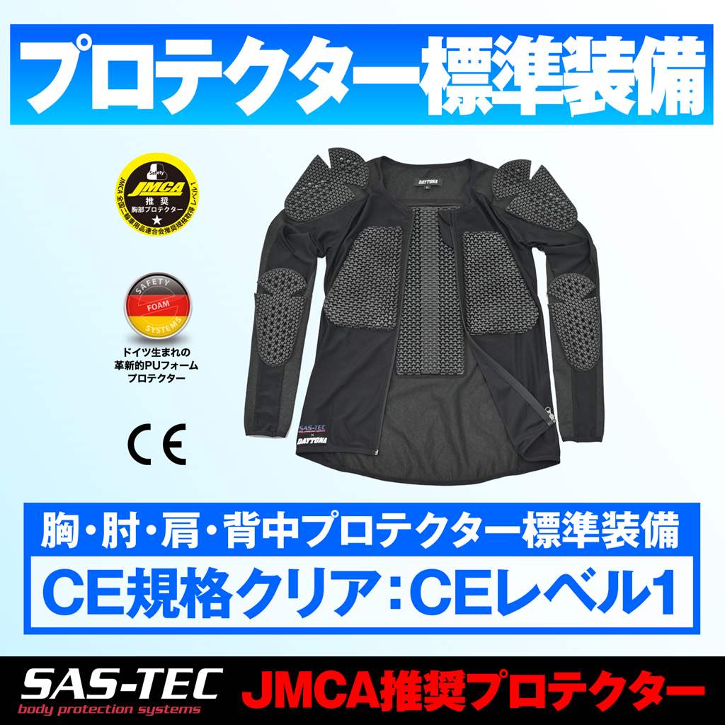 通気性と速乾性に優れるメッシュ生地を全面に使用した、着心重視のインナープロテクターウエア。夏でも涼しく着れるメッシュ生地を採用していますが、インナーとして使うことでオールシーズン使用可能。胸、肩、ひじ、背中には、CE規格をクリアした安全性と体にフィットする装着感の良いプロテクターが付属。プロテクターはシート状でフレキシブルに追従する新型SAS-TEC「トリプルフレックスシート」を採用。プロテクターの目立ちにくさと、つけていることを忘れるほどの動きやすさを実現。シルエットはタイト目なスリムフィット形状。・本体: メッシュ生地:ポリエステル85%、ポリエチレン15%・裏地:ストレッチ生地:ポリエステル88.3%、ポリエチレン11.7%夏でも涼しく着れる通気性と速乾性に優れるメッシュ生地。インナーとして使うことでオールシーズン対応全面にストレッチ性のあるメッシュ生地を採用し、着心地を重視プロテクターはフレキシブルに体に追従する「トリプルフレックスシート」を採用プロテクターの目立ちにくさと、つけていることを忘れるほどの動きやすさを実現付属プロテクター:SAS-TEC製トリプルフレックス:胸(CEレベル1)、肩(CEレベル1)、ひじ(CEレベル1)、背中(CEレベル1)※身長目安は体型によりあてはまらない場合があります。その他表示は製品寸法です。ヌードサイズ(目安サイズ)ではありません。