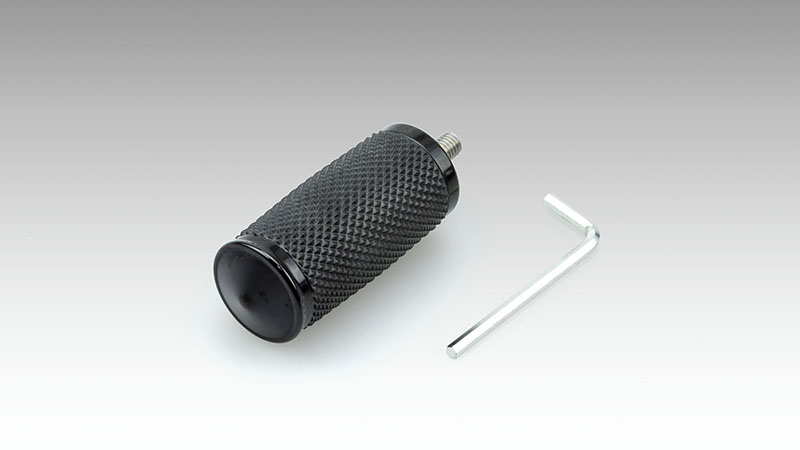アルミビレットボディーのペグ本体に特殊製法による継ぎ目のないローレットラバーを巻いた太目なシルエットが特徴。(最大部Φ26)メトラフートペグと合わせればカスタム度が急上昇いたします。【取付ネジ】M6 P1.0【本体サイズ】Φ26(最大値)×60mm