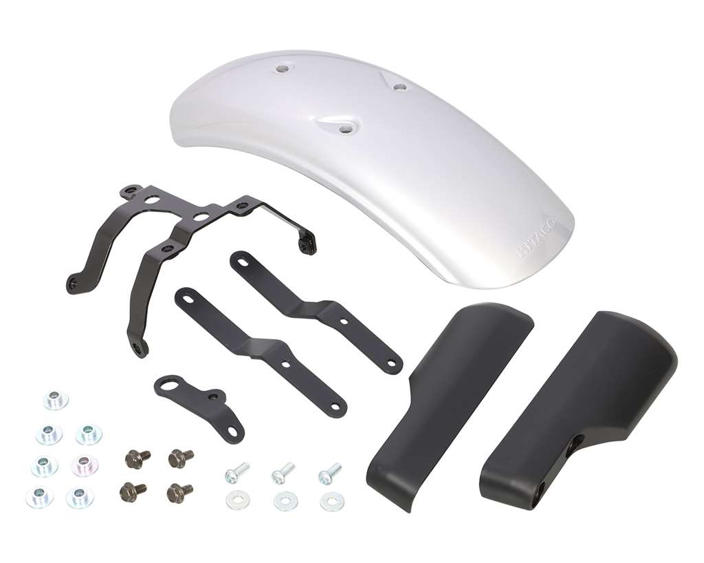 専用設計のショートフロントフェンダーです。ボルトオンフェンダー本体:ABS樹脂製ステー:スチール製ブラックフォークカバー付属※ノーマルフェンダーと色合いが異なりますので、予めご了承ください。※フェンダー本体は製造工程上、多少のキズ等がある場合がございますので、予めご了承ください。※キタコ社製サイドリフレクターとの同時装着不可