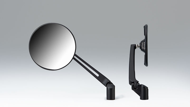 シンプルなデザインに漂うプレミアム感!アルミダイキャスト製ボディと平織りの艶消しカーボンプレートのコンポジット仕様。幅広いスタイルにも雰囲気を損なうことなく馴染むデザインを採用いたしました。機能面においてはECE認証取得済で新保安基準(鏡面サイズ)を満たしている為、安心してご使用いただけます。※本製品には衝撃緩和装置が備わっておりません。車両によっては別途必要となります。【デザイン】ラウンド【アーム長】ショート(138mm)【鏡面サイズ】78×118mm【内容物】ミラー1個(左右兼用)・正ネジM10/逆ネジM10/正ネジM8/逆ネジ/M8・ミラーホールプラグ