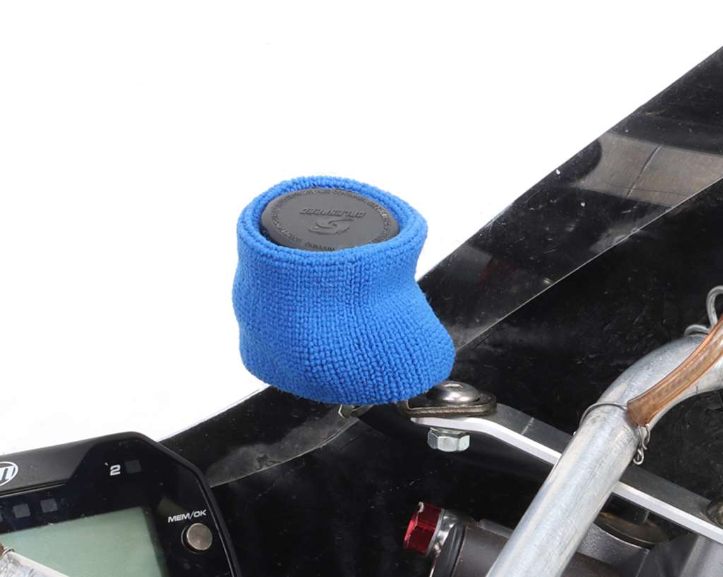 パイル生地でフィット性の高いリザーバタンクソック。フルードの漏れや飛散を防止します。※雨天候でソックが濡れた場合は十分乾かしてから使用して下さい。濡れたまま使用しますとゴムの劣化が早くなる場合があります。※製造ロットにより、サイズや色合いが若干異なる場合がございます。予めご了承ください。パイル生地製サイズ:60mm×40mm