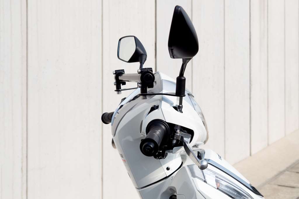 ハンドルをフルできった時にスイッチボックスとガソリンタンクのクリアランスが狭いバイクは多々あります。そのためハンドルバーに直接ガジェットをマウントすると干渉してしまうリスクがあります。