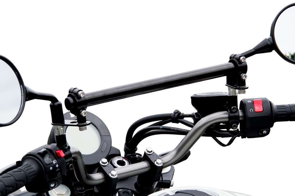 ・付属品:バー本体・材質:バー…スチール ホルダー…アルミ ステー…スチール ボルト…ステンレス※マウントステーのみの商品です。スマホに取り付けるケース部分は別売となっております。※デザイン・仕様は予告なく変更されることがございます。予めご了承ください。※ご自身でお取り付けを行った場合はいかなる場合も補償の対象外となります。ご理解頂きますようお願い申し上げます。複数のガジェットをマウントする事を目的に開発したバー。マルチガジェットマウントバーです。複数ガジェットをマウントするのに最適な剛性、設計を取り入れていますスマートフォンやドリンクホルダー、USBチャージャーやナビゲーションシステムなどハンドル周りにマウントして使うガジェットは増えており、快適にバイクに乗るために複数のガジェットをマウントして使用しているユーザーが増加傾向にあるのは前述したとおりです。マルチガジェットマウントバーは車種によって取り付け方法が若干異なりますが、複数のガジェットをマウントしても問題ない強度を確保しバー本体は国産ハンドルと同じ22.2φを採用。バイク用のガジェットであれば殆どの製品をマウントする事が可能です。車体との干渉などを避けるために車種によってバーの長さは異なりますが3〜5個程度のガジェットをマウントする事を想定しています。メーターの視認性には充分配慮して設計していますメーターにはスピードやガソリン残量、オドメーターなど大事なインフォメーションが表示されます。そのためガジェットを装着した際にメーターの視認性が悪くなってしまうのは避けたいところです。ガジェットを装着する位置は工夫しなければなりませんが、可能な限りメーターの視認性が悪くならない位置にバーがくるように調整しました。ハンドルをフルできってもタンクにあたりにくい設計ですハンドルをフルできった時にスイッチボックスとガソリンタンクのクリアランスが狭いバイクは多々あります。そのためハンドルバーに直接ガジェットをマウントすると干渉してしまうリスクがあります。マルチガジェットバーはハンドルバーよりガジェットをマウントするバーが高い位置になるようしているので干渉しずらい設計です。ガジェットの脱着を繰り返す事を前提に設計したのでバー本体部分は硬く摺れに強いスチールを採用しカチオン塗装で仕上げています。密着性に優れた厚い塗膜を形成することができるため、防錆、防食効果の高い塗装です。バーをクランプする部分は軽量で腐食に強いアルミを採用し塗装で仕上げています。バーエンド部分にはプラスチック製のキャップを採用。雨天時に水などが入るのを防ぎます。全ての素材を同じにするのではなく、場所によって最適な素材を選択しています。