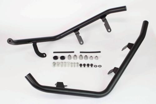 カウル等を加工することなく、装着可能なΦ25.4スチールパイプ製の強固な“フロアステップサイドバー”です。軽度な転倒に対し、カウルのダメージを軽減します。装着時の存在感とデザイン性に優れたフォルムが車両のカスタムイメージを高めます。取付けは、純正ステップラバーの下にあるフレームとカウルを固定している部分に、フロアステップサイドバーのステーを共締めします。カウル同士を接合するネジ部は使用せず、フレーム固定部にフロアステップサイドバーを装着する為、しっかりと固定出来ます。又、装着後、フロアステップサイドバーのステー部を含む固定部分は純正ステップラバーの下に収まる為、ステップ周りがスタイリッシュにまとまります。フロアステップサイドバーΦ25.4パイプ、ステー:スチール製ブラック塗装フロアステップサイドバー先端部にM8サービスホールカラーを採用。 サービスホールカラー:アルミ製ブラックアルマイト仕上げ SP武川社製ロゴ入り※本製品を装着する際左右フロアマットのリブ部を一箇所加工する必要があります。■フロアステップサイドバー装着車用のLEDフォグランプキットが装着可能。