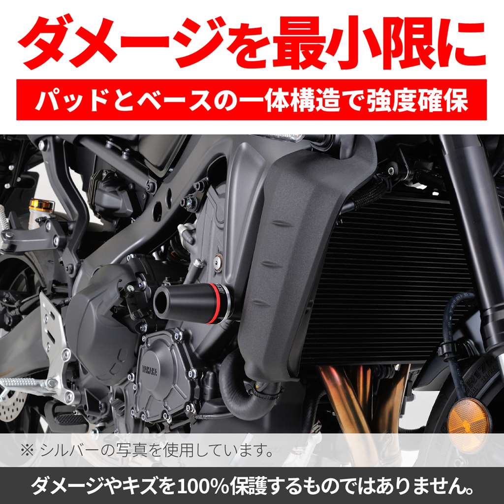 スポーティーなスタイルでエンジンをプロテクト。精悍なオールブラック仕様。樹脂製パッドとアルミベースの一体構造により十分な強度を確保。転倒時の衝撃を受け流し、クランクケース割れなどの致命的なマシンダメージを最小限に軽減。車種専用設計により、車両に合わせた適正な張り出しを設定。取り付けが簡単なボルトオン設計。転倒時の衝撃を受け流し、クランクケース割れなどの致命的なダメージを軽減樹脂製パッドとアルミベースの一体構造により十分な強度を確保補修用としてパッド単体でリペアも可能ボルトオン設計で簡単取付