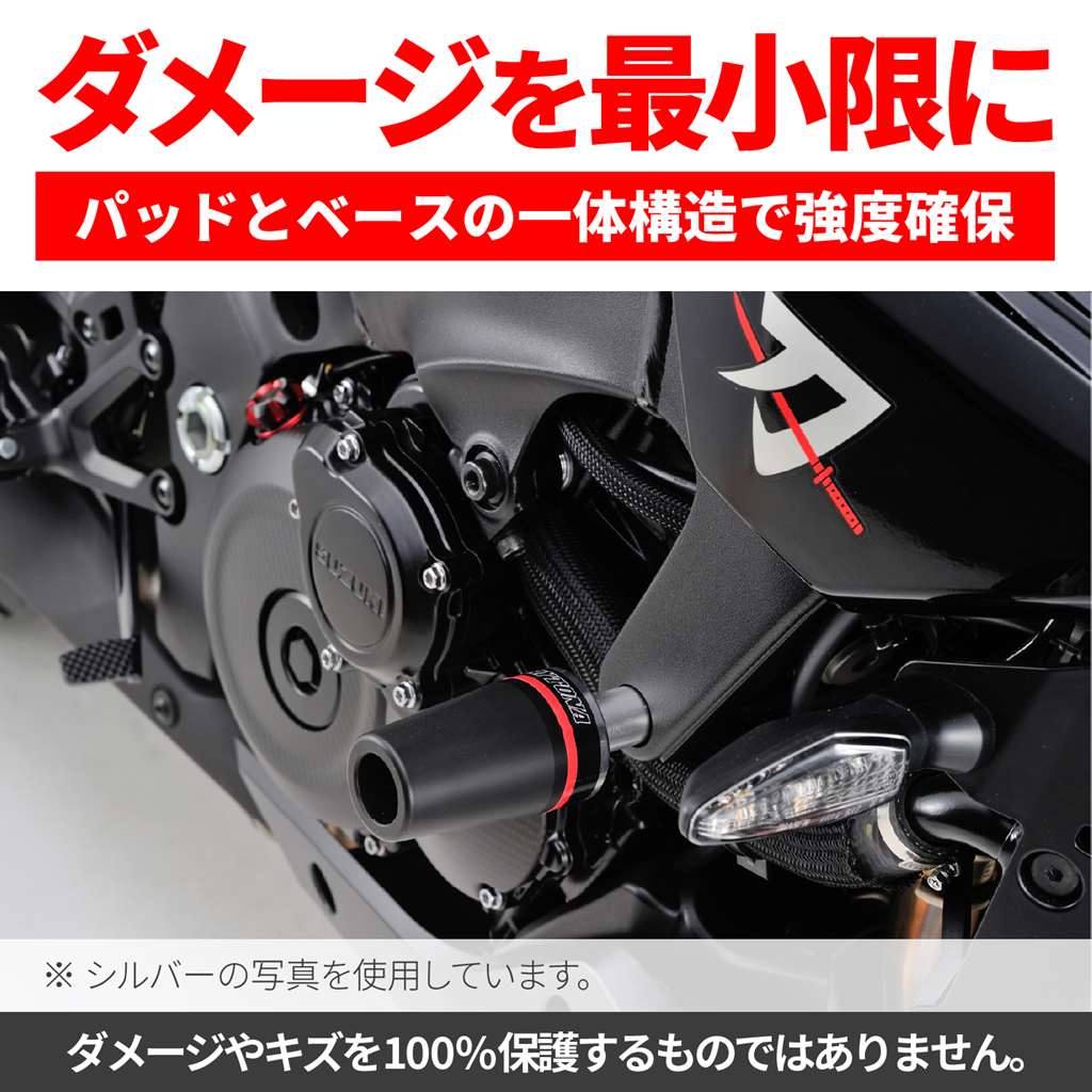 スポーティーなスタイルでエンジンをプロテクト。精悍なオールブラック仕様。樹脂製パッドとアルミベースの一体構造により十分な強度を確保。転倒時の衝撃を受け流し、クランクケース割れなどの致命的なマシンダメージを最小限に軽減。車種専用設計により、車両に合わせた適正な張り出しを設定。取り付けが簡単なボルトオン設計。転倒時の衝撃を受け流し、クランクケース割れなどの致命的なダメージを軽減樹脂製パッドとアルミベースの一体構造により十分な強度を確保補修用としてパッド単体でリペアも可能ボルトオン設計で簡単取付