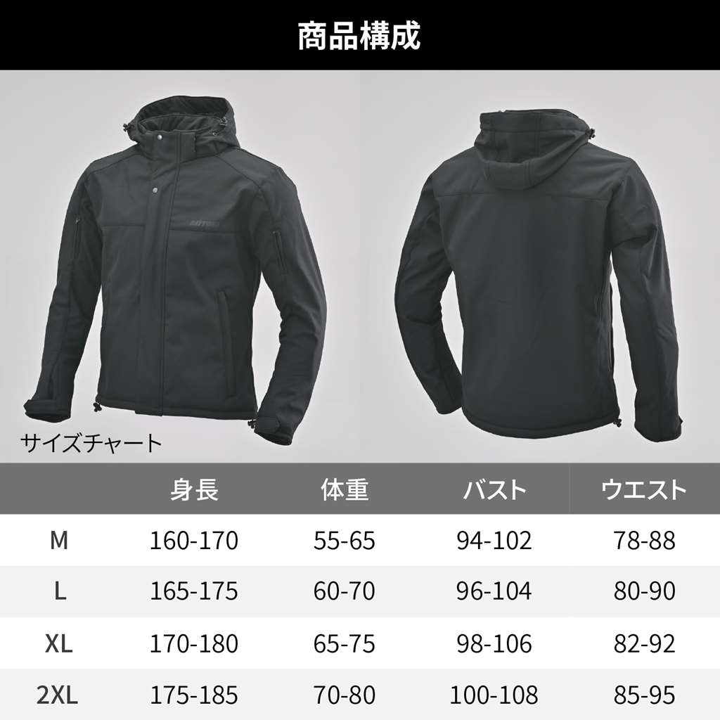 DJ-005 ソフトシェルジャケット防風 ブラック Lサイズ プロテクター付属 DAYTONA(デイトナ)