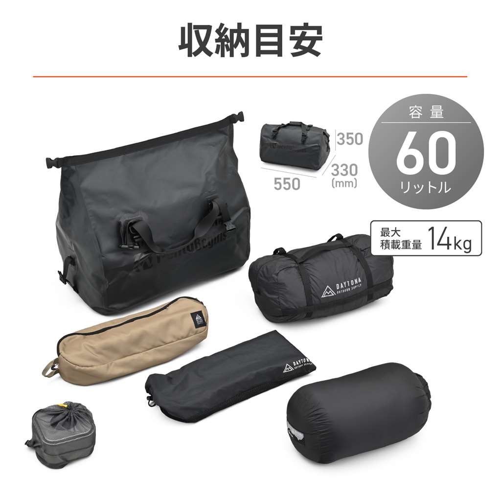 DH-767 ブラック シートバッグ 防水 60L シート固定ベルト付属 DAYTONA(デイトナ)