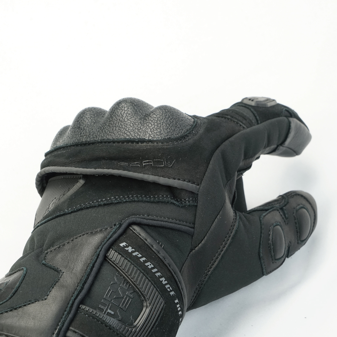 要所に配置されたシリコンパーツやウレタンパッドが安心感を生み、寒い季節のアクティブライドを後押しする高性能ウインターグローブが、アドベンチャーシリーズで登場。動きやすいフローティングナックルパッド仕様、手首内側にはフェイクボア、手内側には高機能中綿の最高峰素材プリマロフト(R)を採用し、軽量かつ撥水性の高い中綿で極寒の中での快適なライディングを提供します。手のひら側は耐久性・プロテクション性の高い牛革を使用。MATERIAL:甲側/牛革、ウインドガードファブリック、反射素材、ナックルパッド中綿/プリマロフト(R)掌側/牛革、スマートタッチレザーインナー/HIPORA(R)グローブインサート裏地/フリース、フェイクボアFUNCTION: 両手人差し指・親指タッチパネル対応
