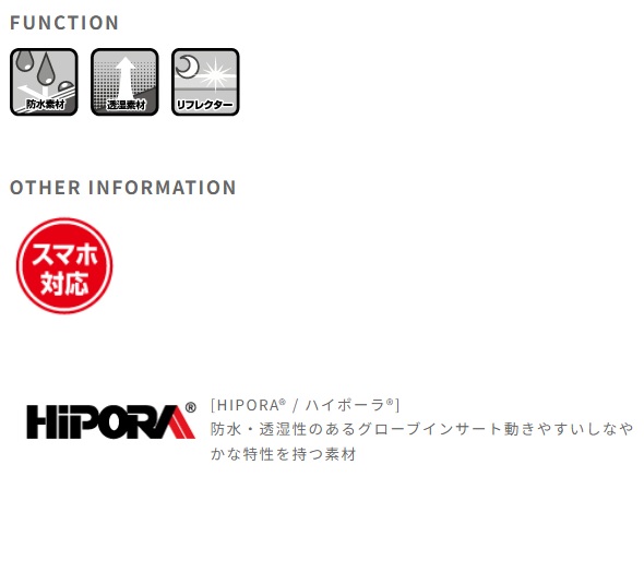 防寒性と動きやすさを両立するロングカフグローブに、各所に適度なプロテクション性を持たせた冬のツーリンググローブのベストセラー。カーボンナックルパッド、手首を守るリストパッドのほか、各指に配されたプロテクションパーツにより冬のライダーの手元をしっかりとプロテクト。HIPORA(R) グローブインサート採用で防水も万全、指先はスマホ対応、リフレクター装備で、機能面も充実した完成度の高い1双です。MATERIAL: 甲側/牛革、ニットジャージ、反射素材、カーボンナックルパッド、中綿掌側/牛革、スマートタッチレザーインナー/ハイポーラグローブインサート裏地/フリース、フェイクボアFUNCTION: 両手タッチパネル対応